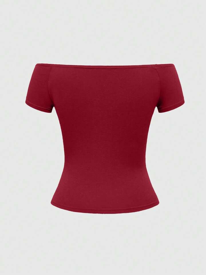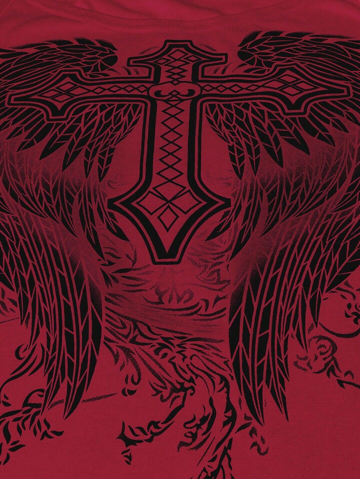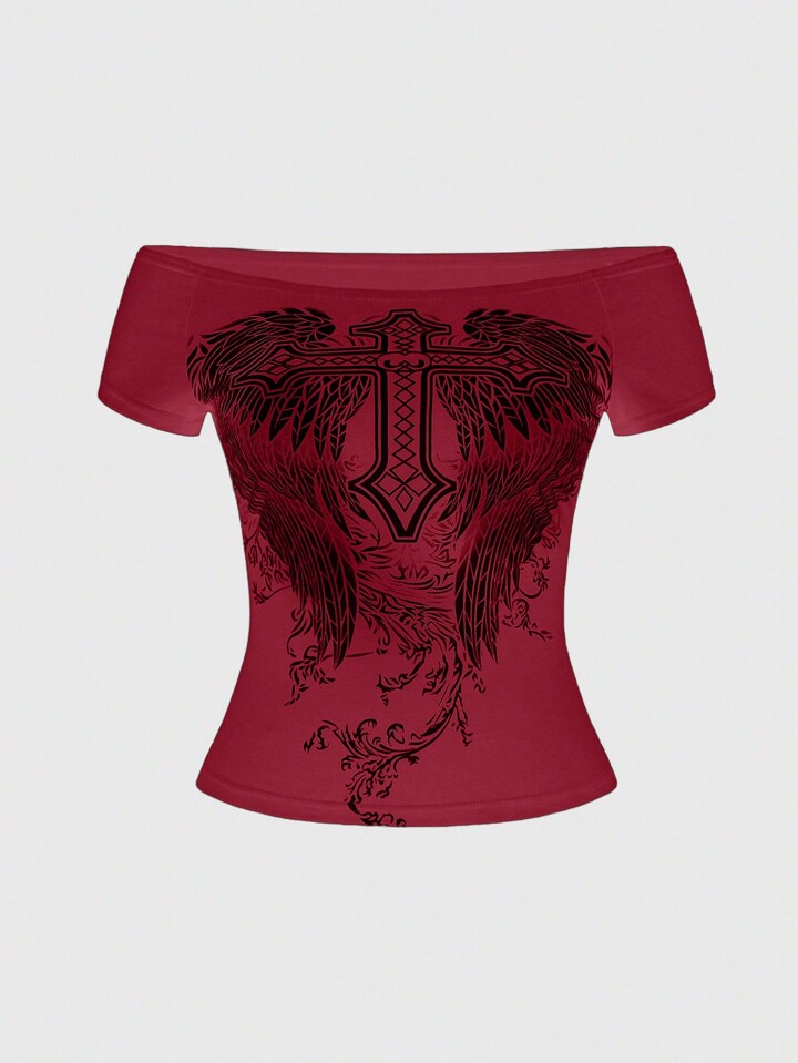 Grunge Punk Women's Off-Shoulder Cross & Wing Print T-Shirt