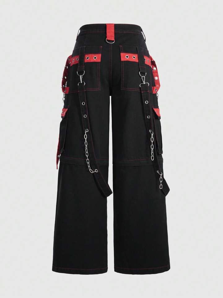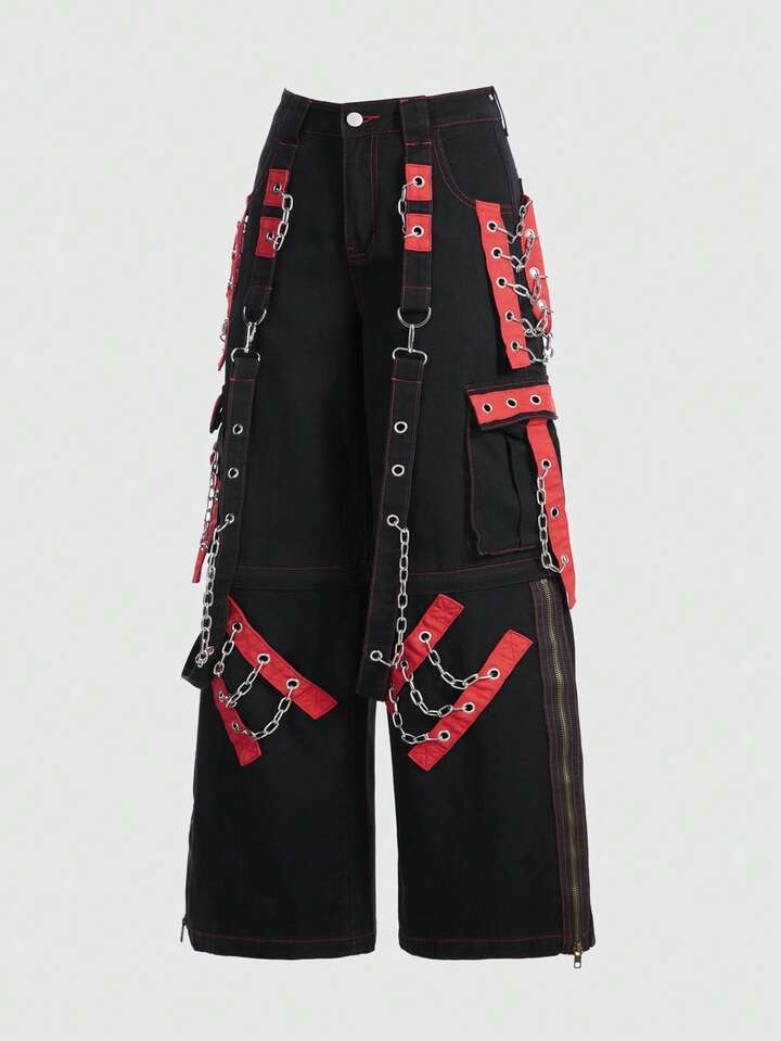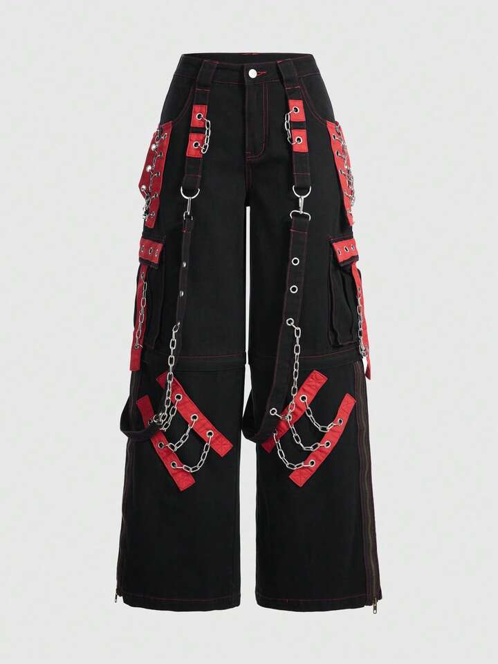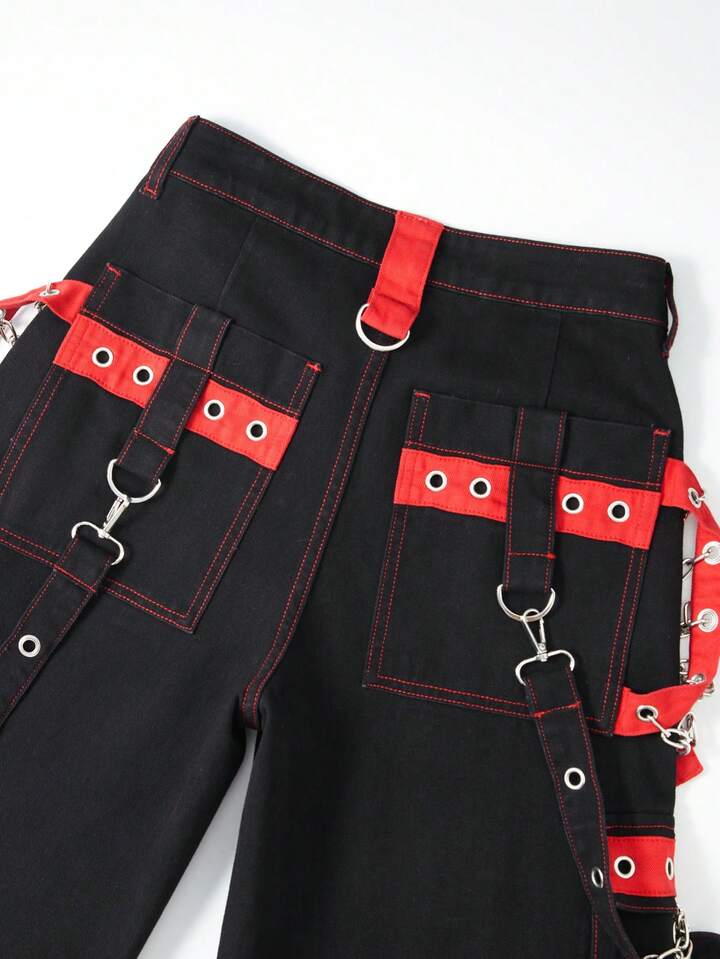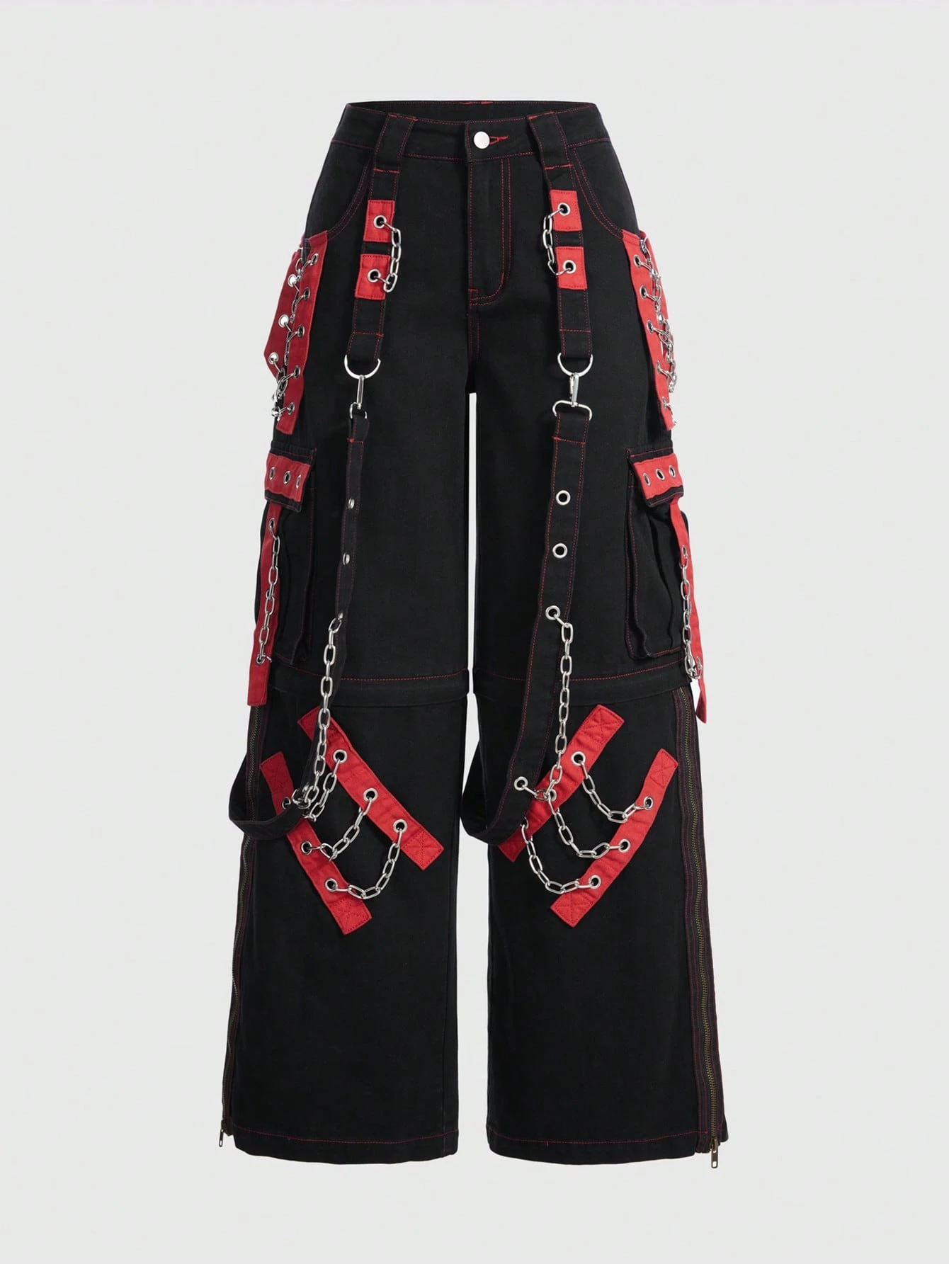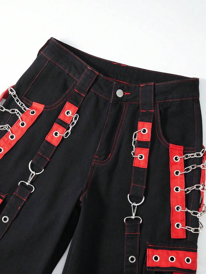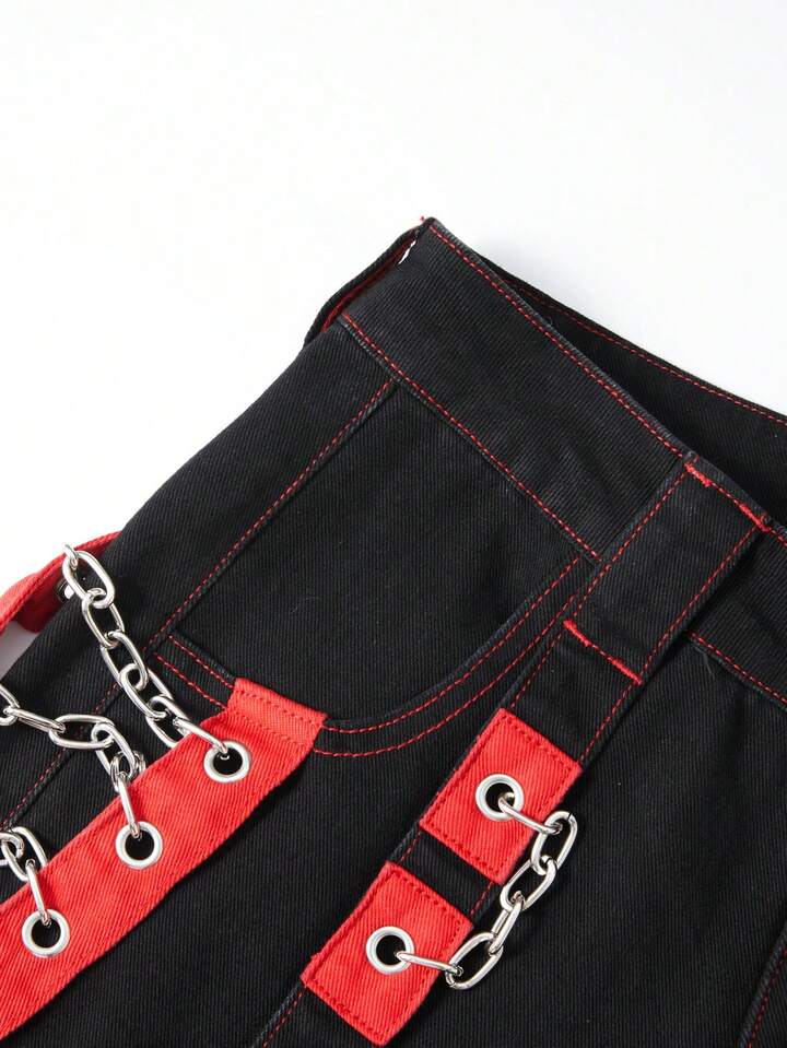 Grunge Punk Women's PUNK Style Patchwork Grommet Denim Jeans