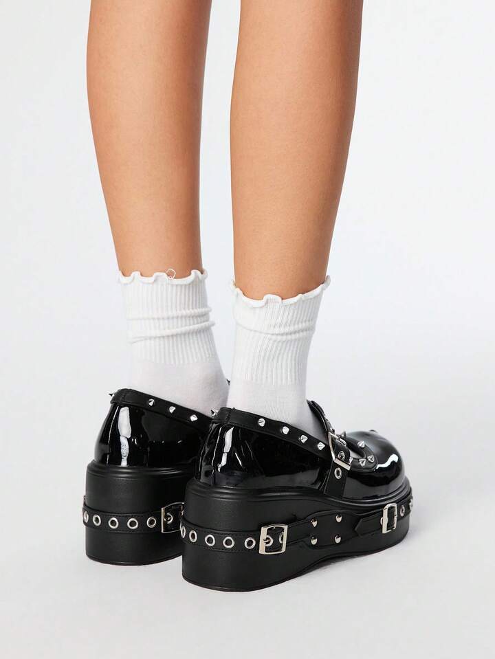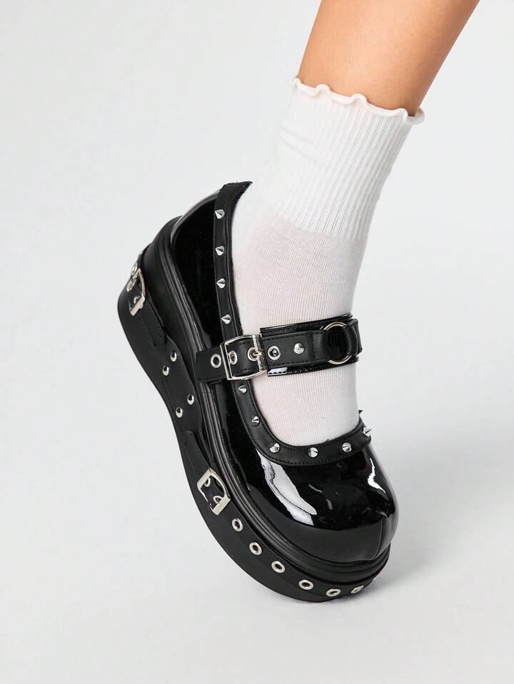 Grunge Punk Women's Punk Rock Gothic Side Zip Rivet Waterproof Platform Knight Boots, Heavy Duty Thick Bottom Motorcycle Boots, Platform & Chunky Heeled Shoes, Halloween