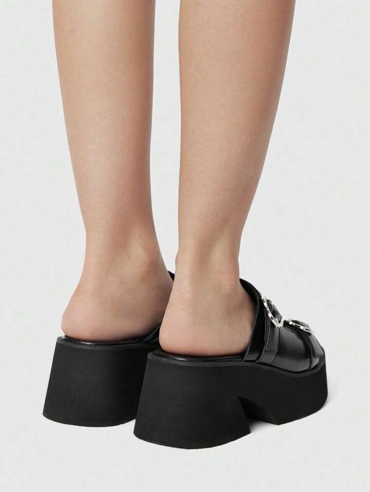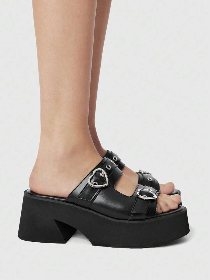 Grunge Punk Women's Punk Style Black PU Leather Thick Sole Platform Wedge Gladiator Sandals With Multiple Buckle Design, Suitable For Graduation Photo, Professional Outfit Spring Shoes Spring Break Easter