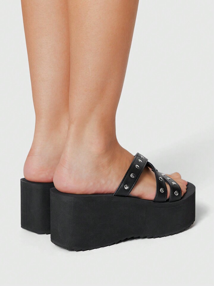 Grunge Punk Women's Punk Thick-Soled Sandals, Gothic Dark Style Wedge Beach Shoes Spring Shoes Spring Break Easter