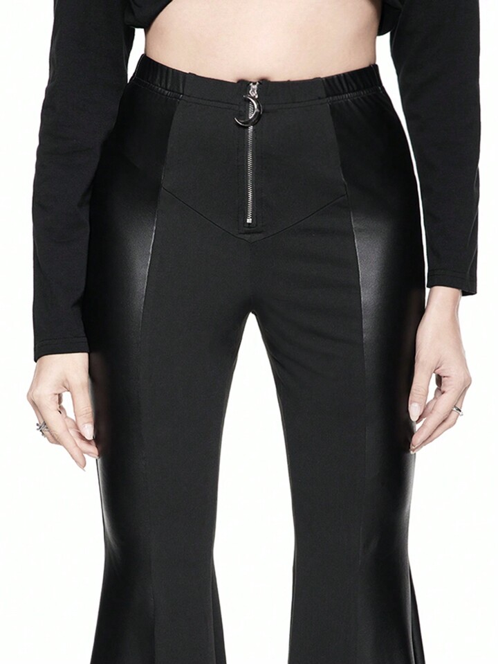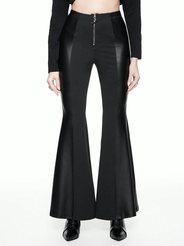 Grunge Punk Women's Retro Punk Gothic Style PU Patchwork Moon Pendant Flared Pants