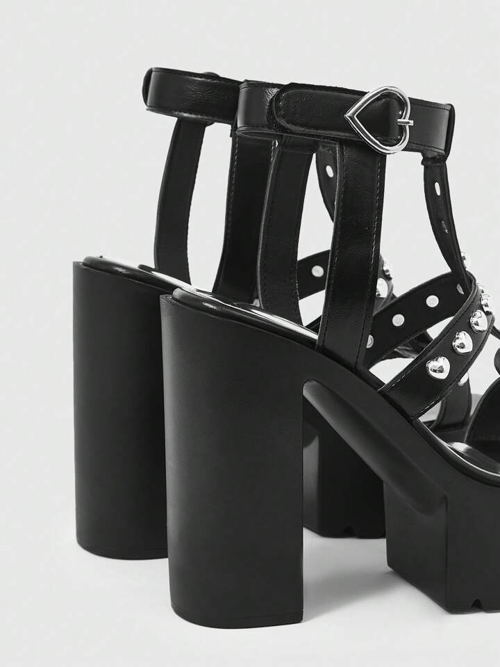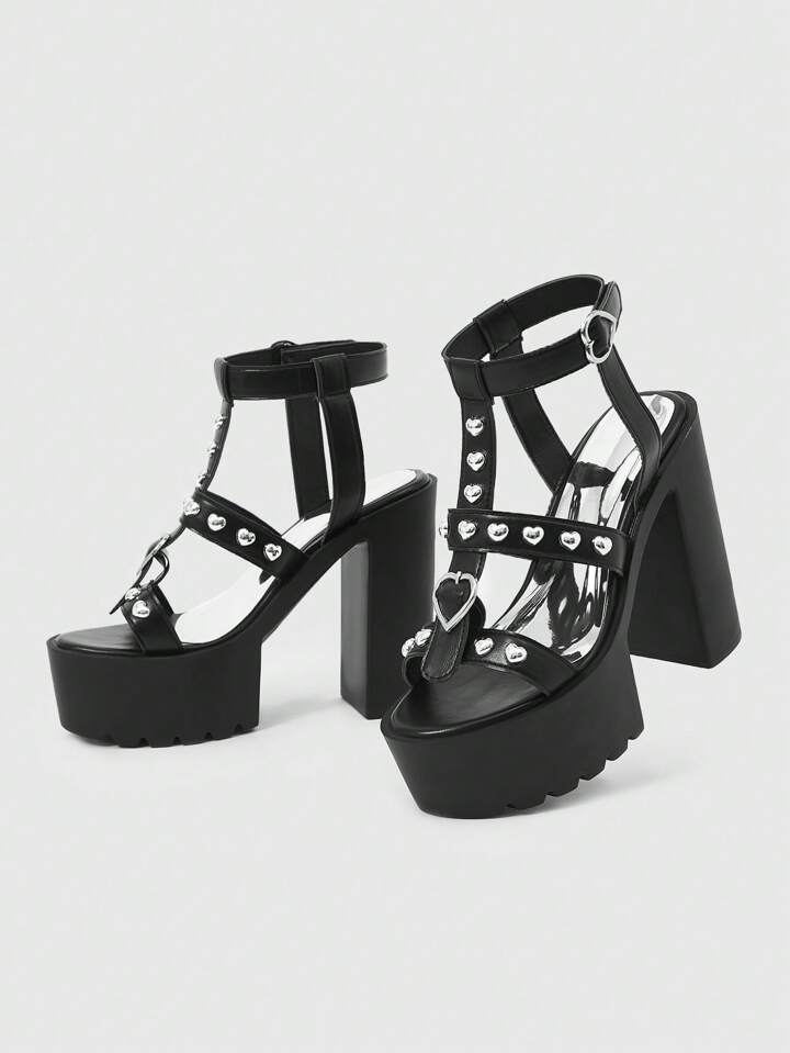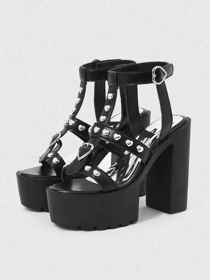 Grunge Punk Women's Simple Heart Decor High Heel Sandals, Casual Daily Wear