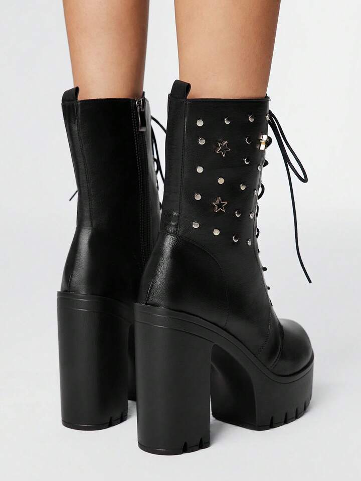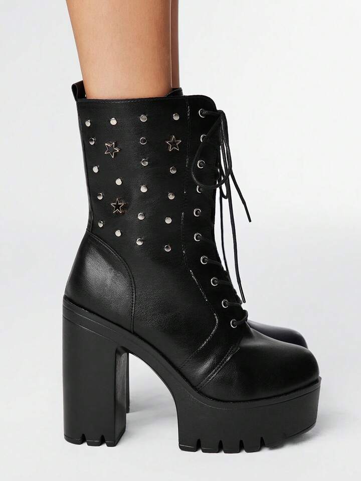 Grunge Punk Women's Versatile Commuter Waterproof Platform Chunky Heel Ankle Boots