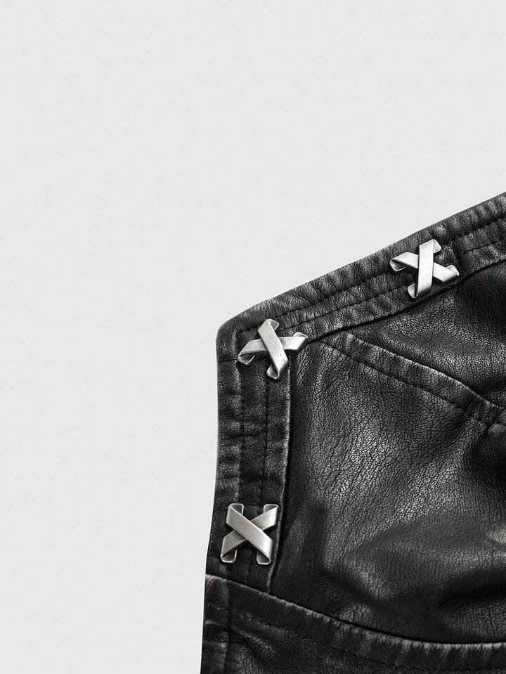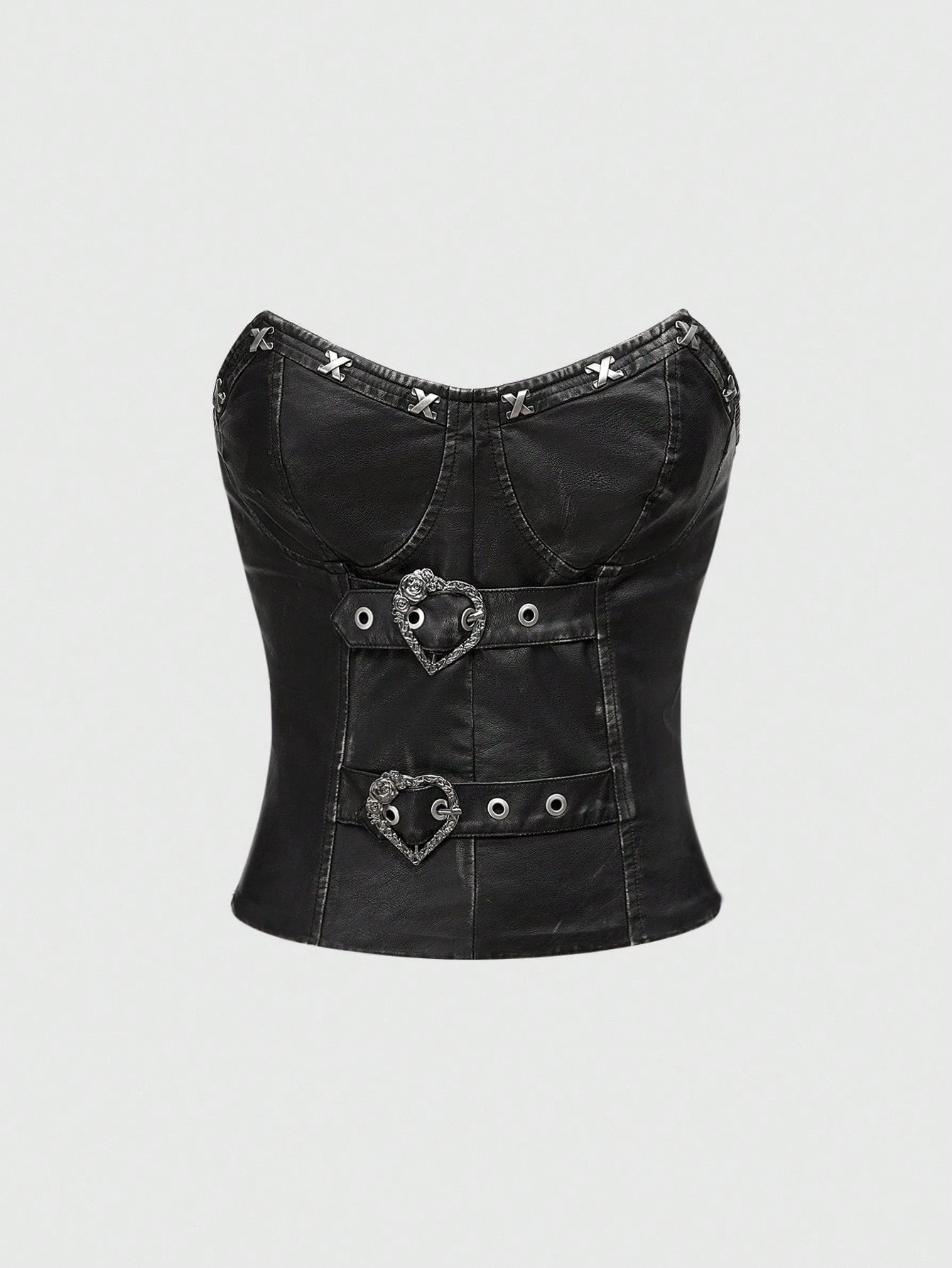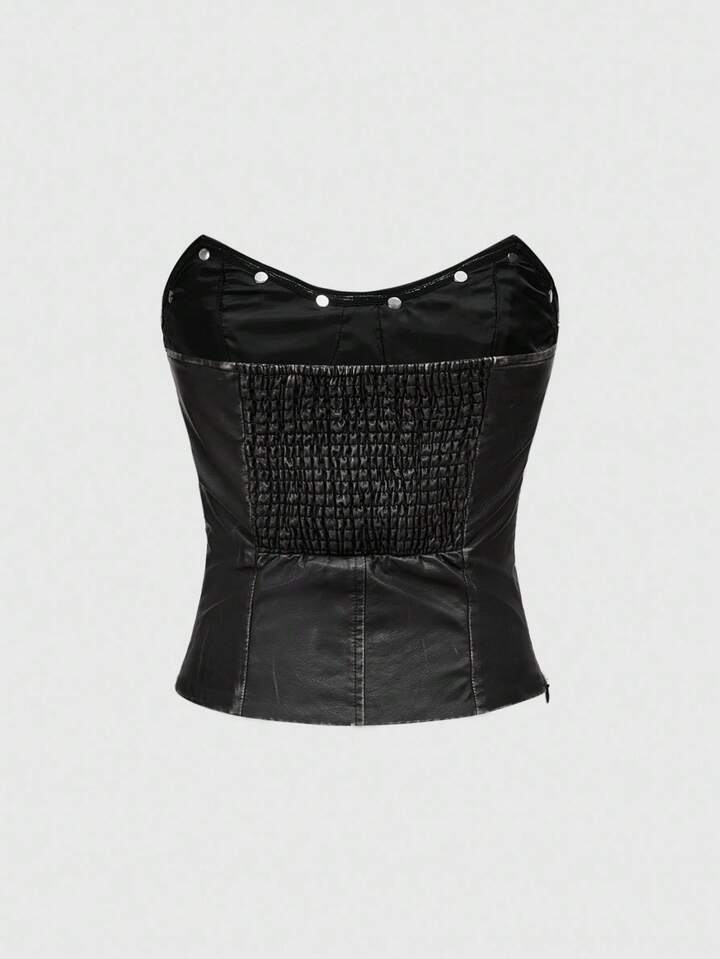 Grunge Punk Women's Y2K Punk PU Rivet Design Tight Bandeau Crop Top