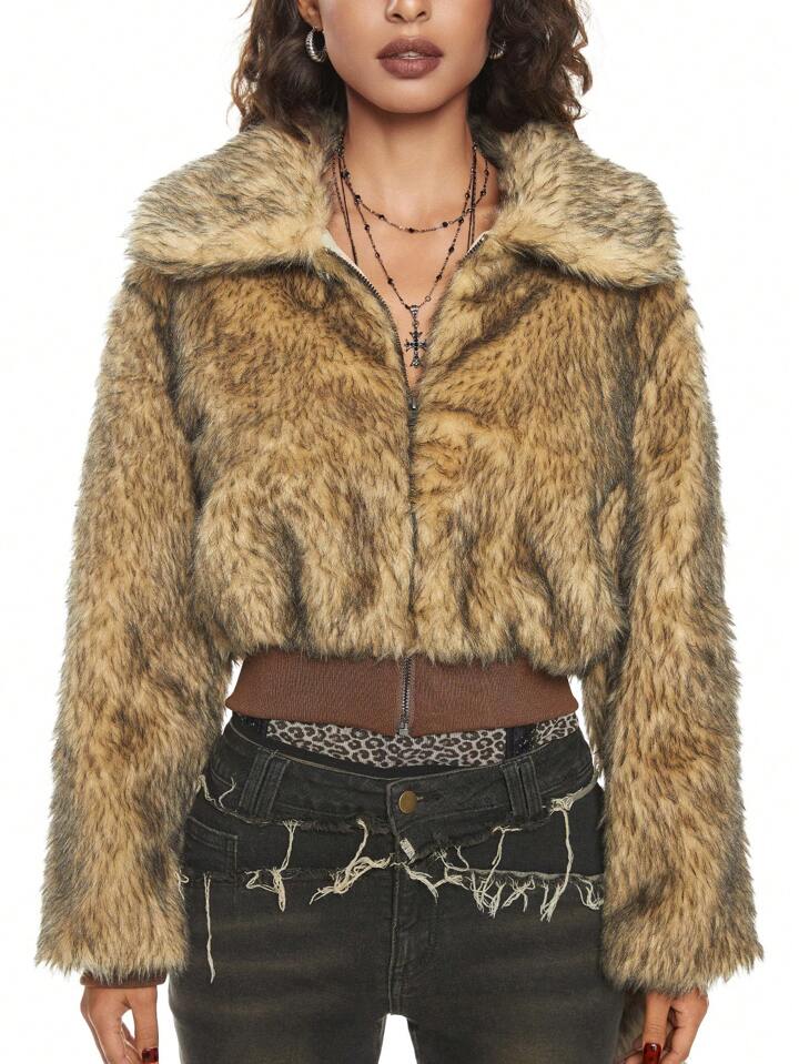 Grunge Punk Women's Y2K Retro Millennium Sexy Hot Girl Short Fluffy Jacket