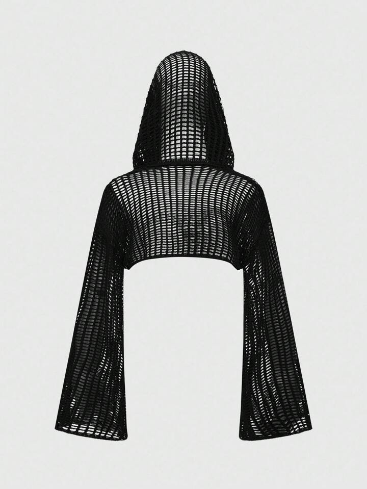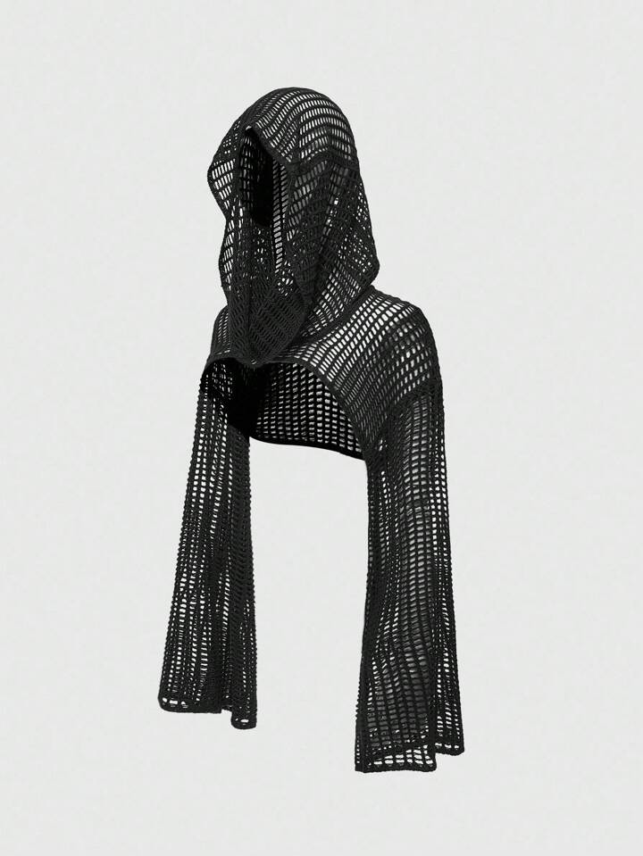 Grunge Punk Women's Y2K Versatile Mesh Hollow Long Sleeve Hooded Sweater