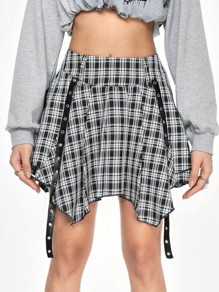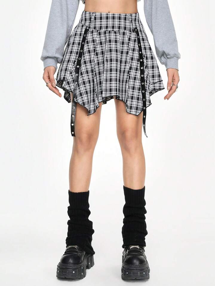 Grunge Punk Y2K Baddie Punk Plaid Ruffle Skater Skirt For Women,Summer , Summer Outfits ,Summer Clothes