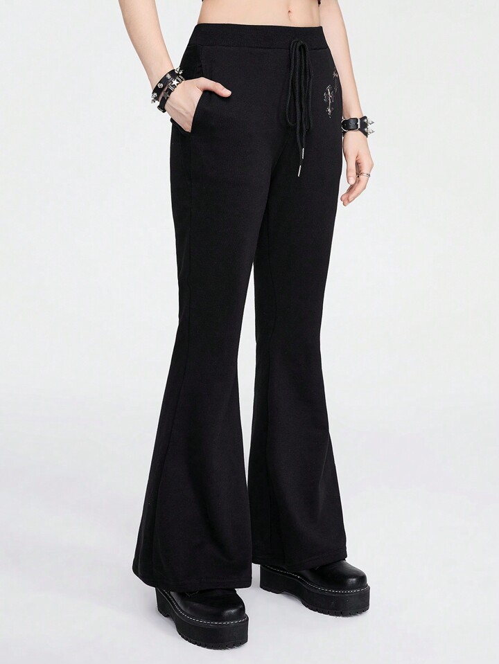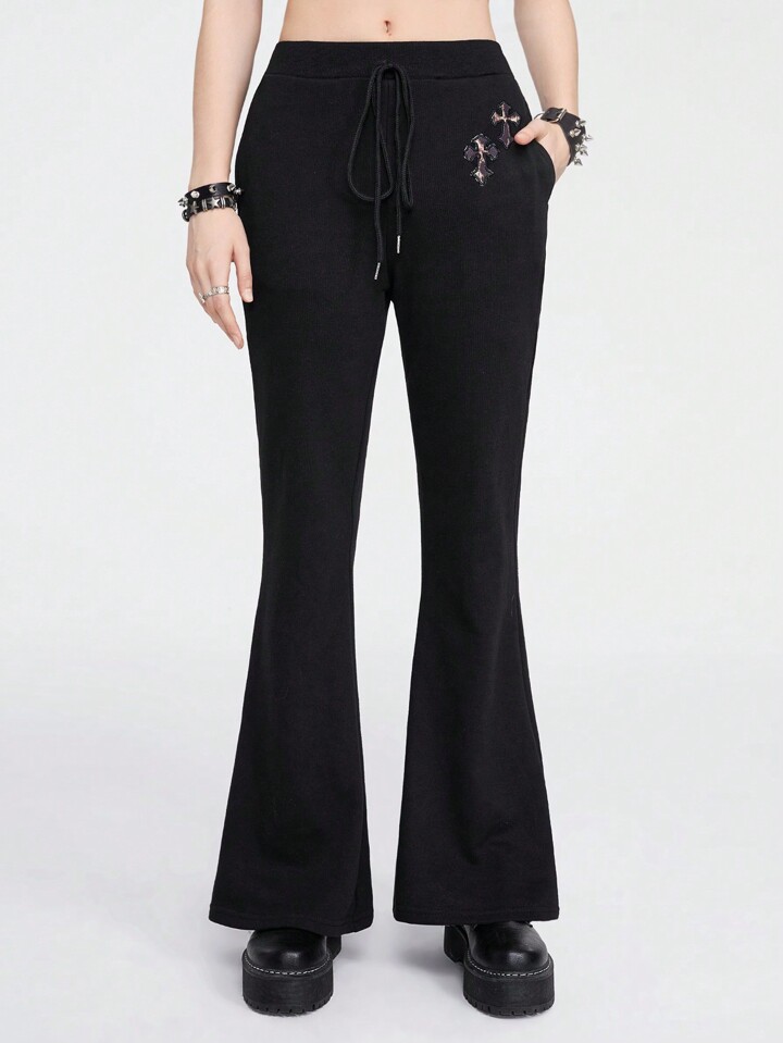 Grunge Punk Y2K Leopard Print Cross Embroidery Women's Flare Pants