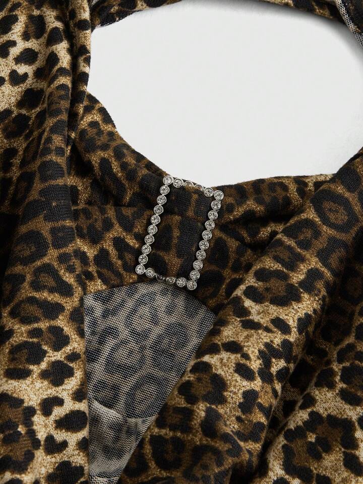 Grunge Punk Y2K Retro Bombshell Leopard Print Drawstring Waist Ruffled Draped Neck 2 In 1 Camisole Dress For Women