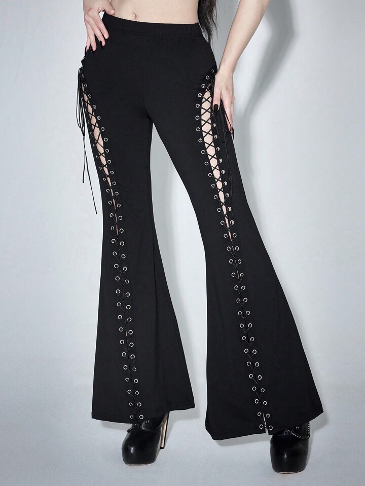 Grunge Punk Y2K Sexy Hollow-Out Rope Design Bodycon Flare Pants