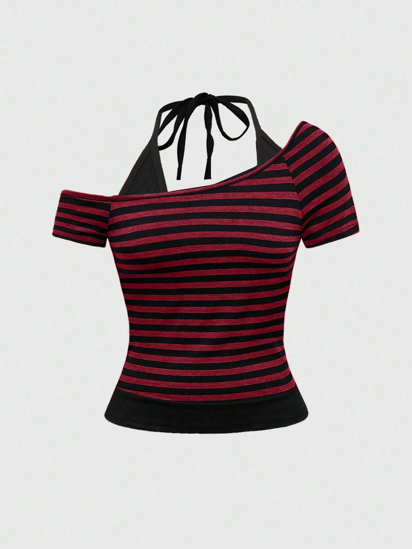 Grunge Punk Y2K Streetwear Women's T-Shirt With Stripes, Contrasting Colors, Halter Neckline And Tie Bow Design