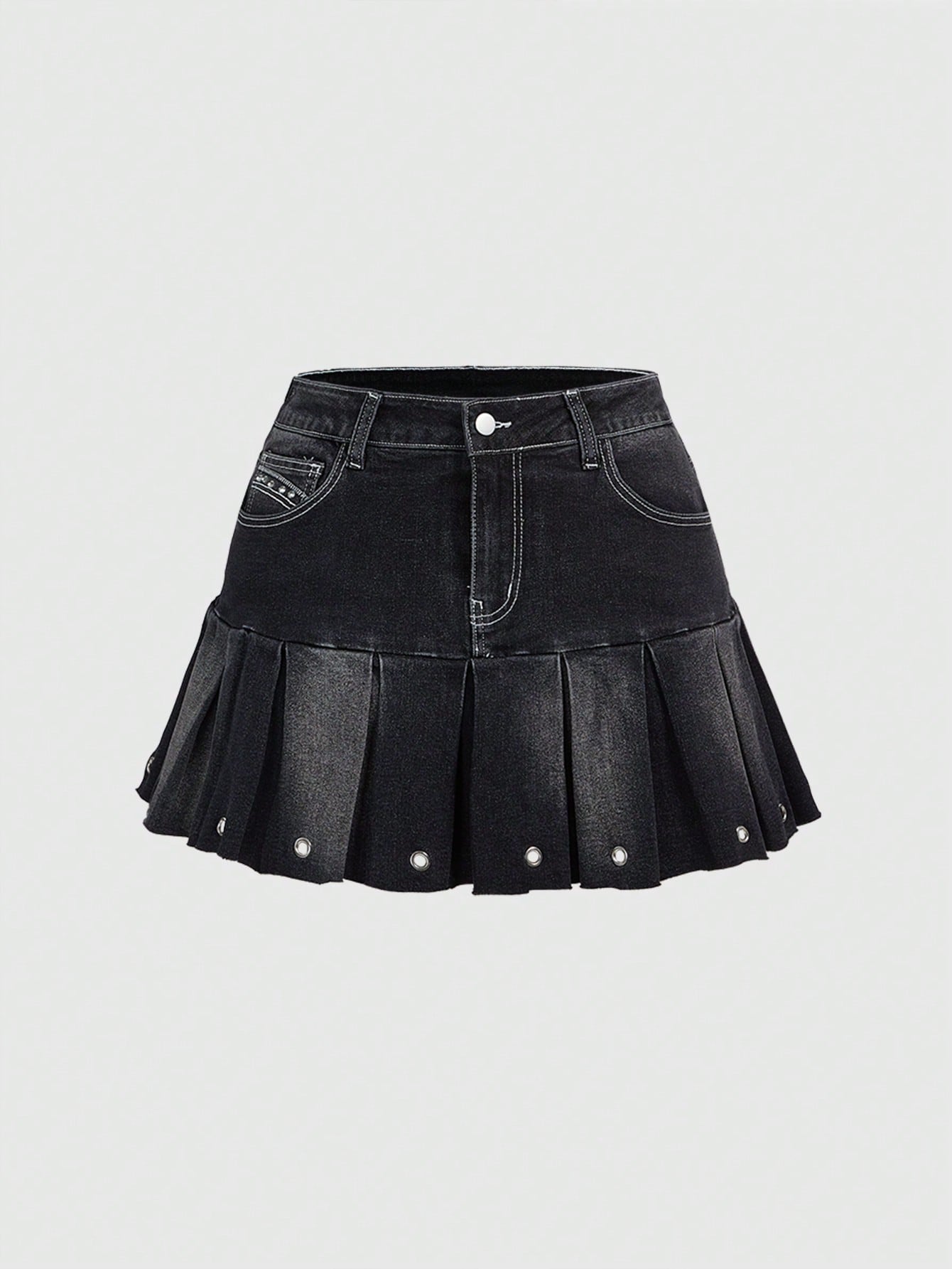 Grunge Punk Y2K Vintage Distressed Frayed Hem Pleated Super Short Women Denim Mini Skirt