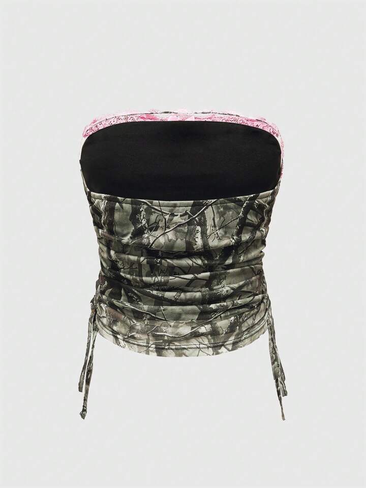 Grunge Punk Y2K Vintage Hiphop American Sexy Camouflage Net Rhinestone Drawstring Women Top