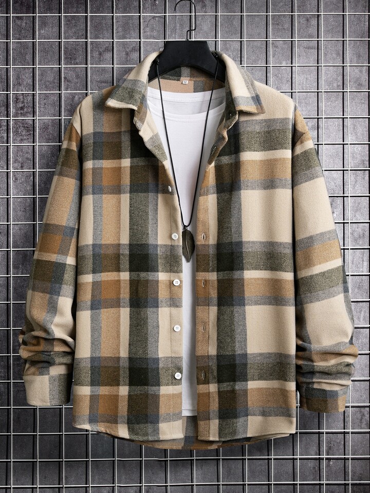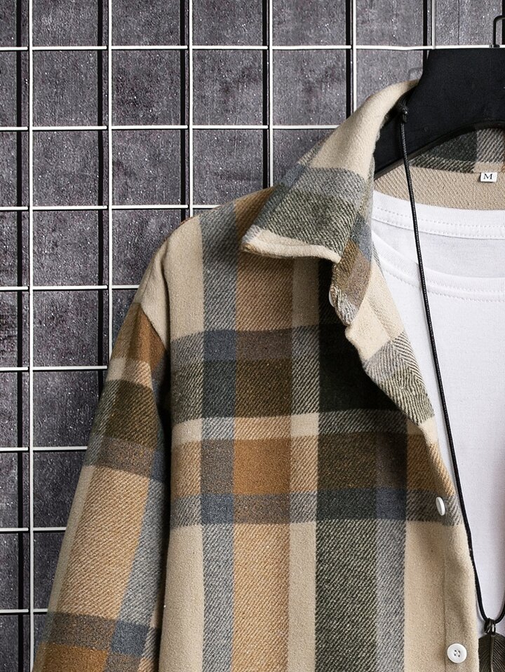 Guys 1pc Plaid Print Overcoat