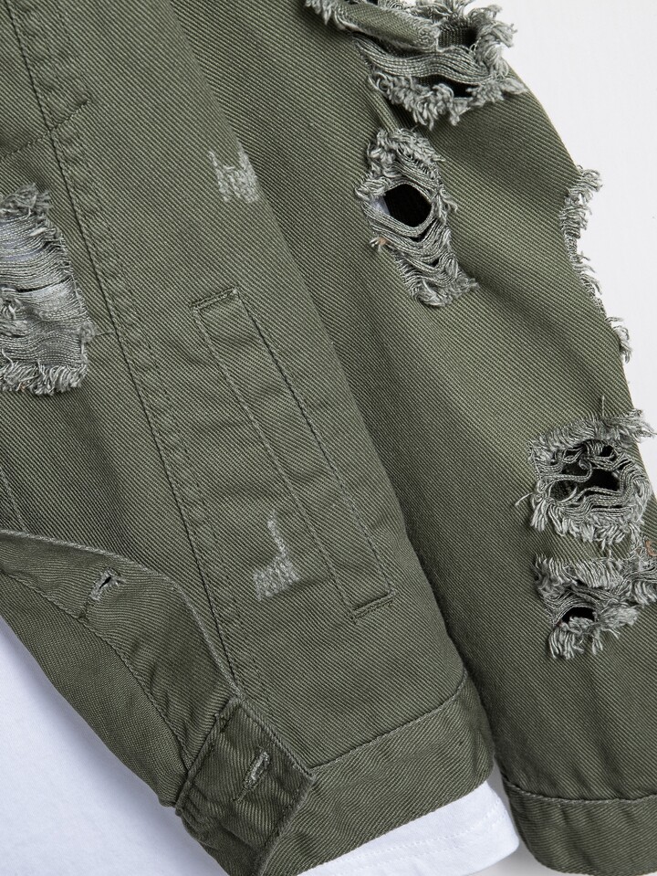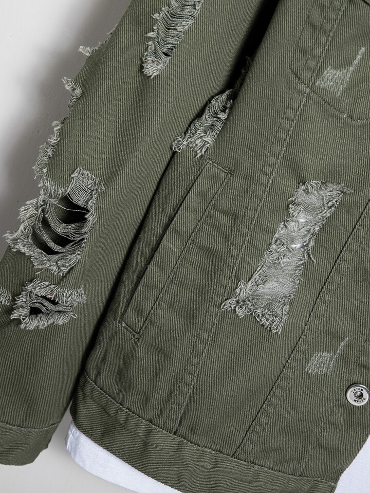 Guys 1pc Ripped Frayed Flap Pocket Denim Jacket
