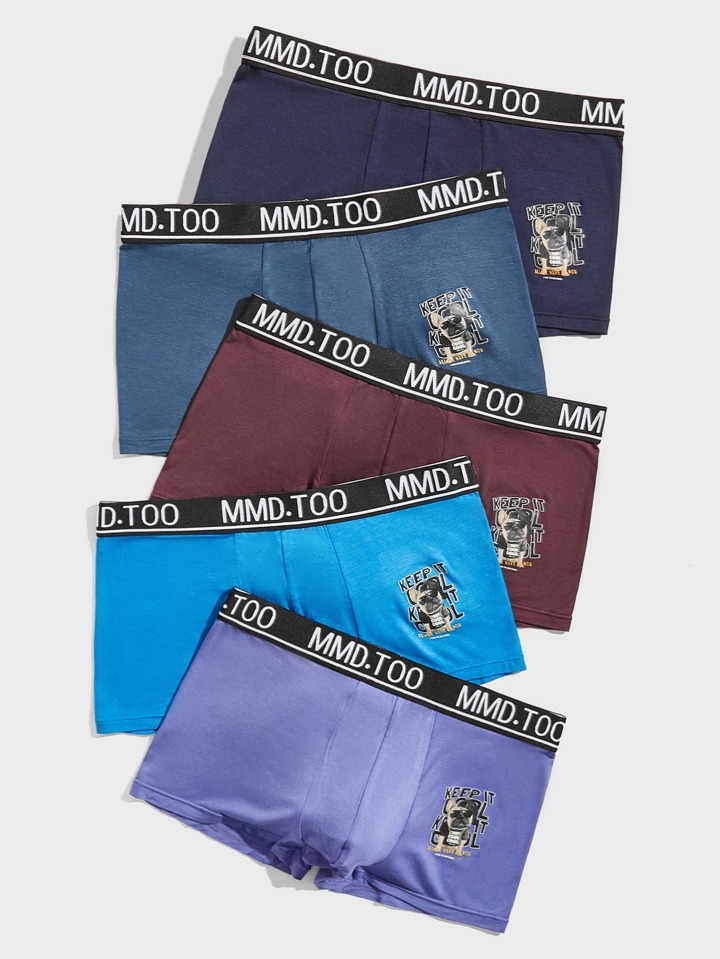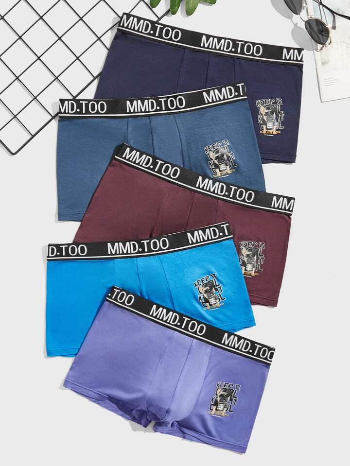 Guys 5pcs Dog & Letter Graphic Boxer Brief