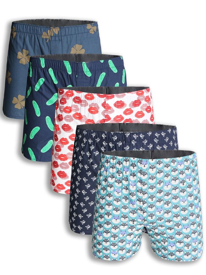 Guys 5pcs Lips Print Boxer Brief