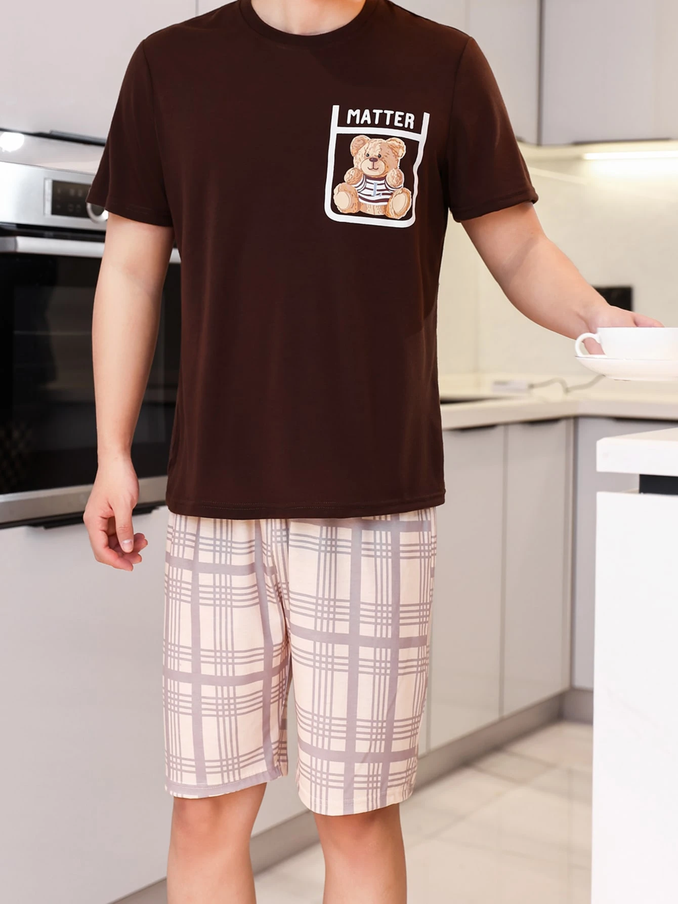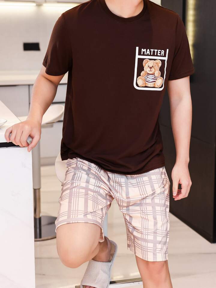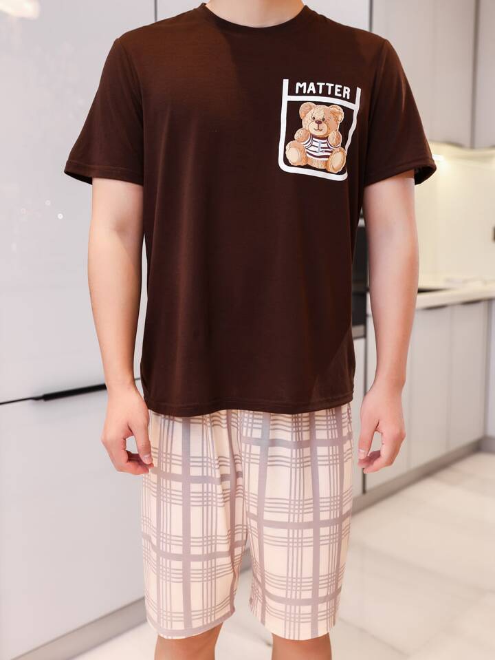 Guys Bear & Plaid Print PJ Set