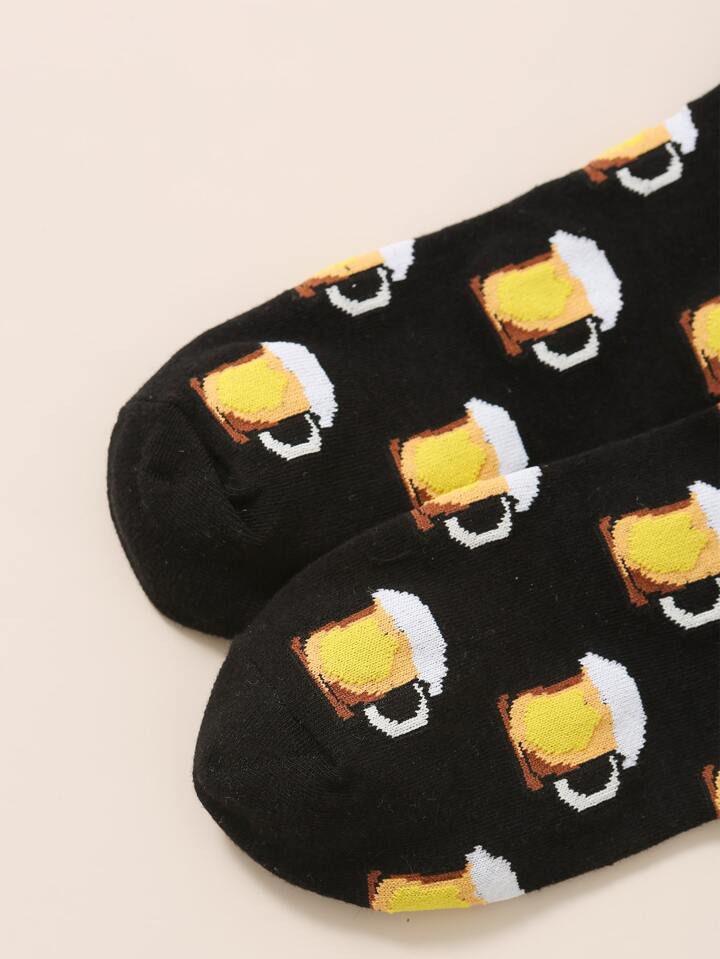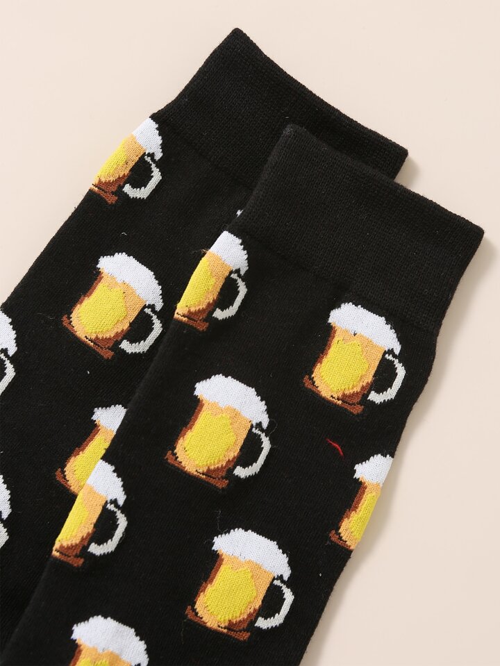 Guys Beer Print Crew Socks
