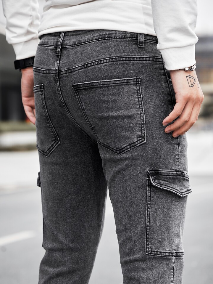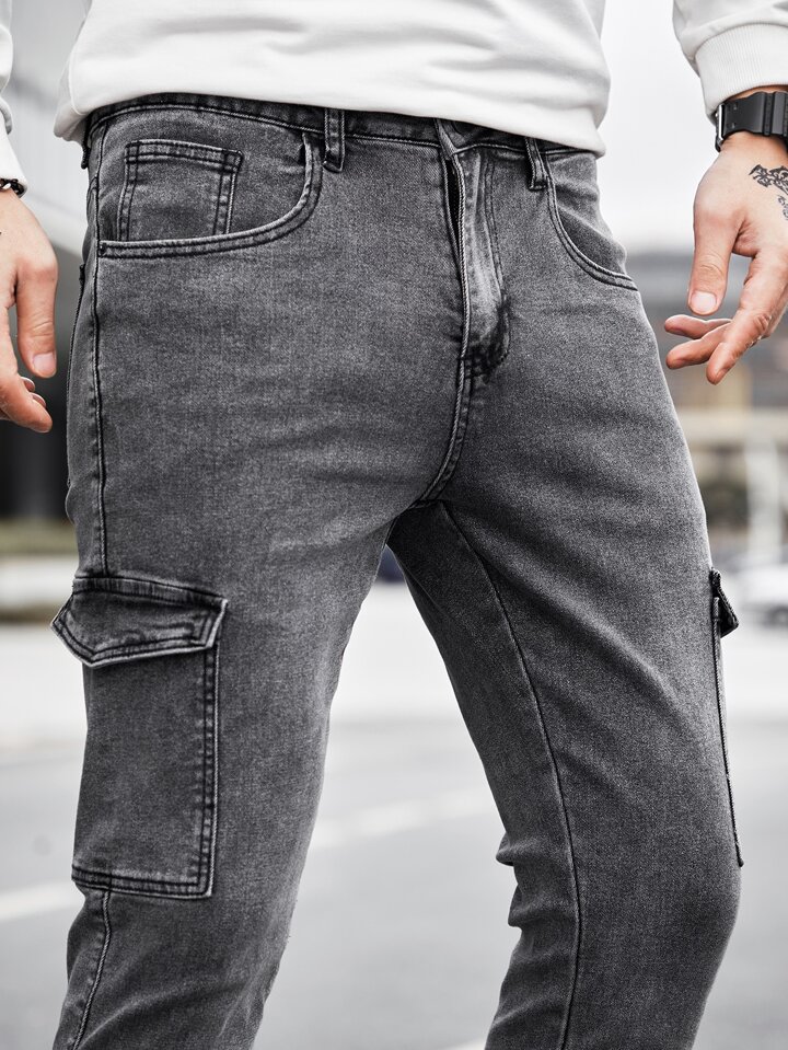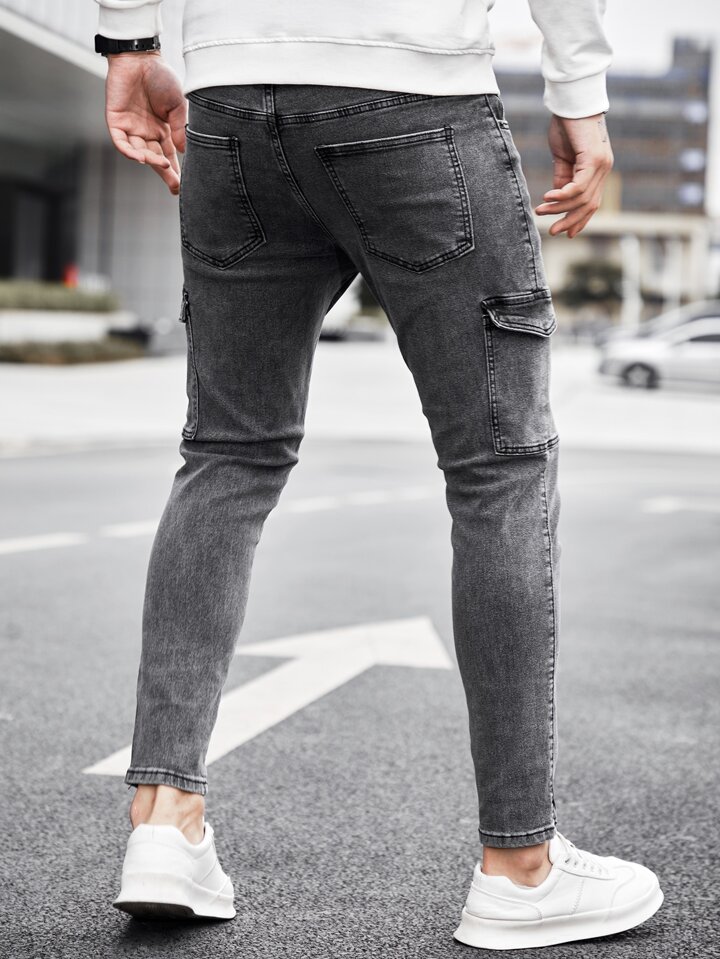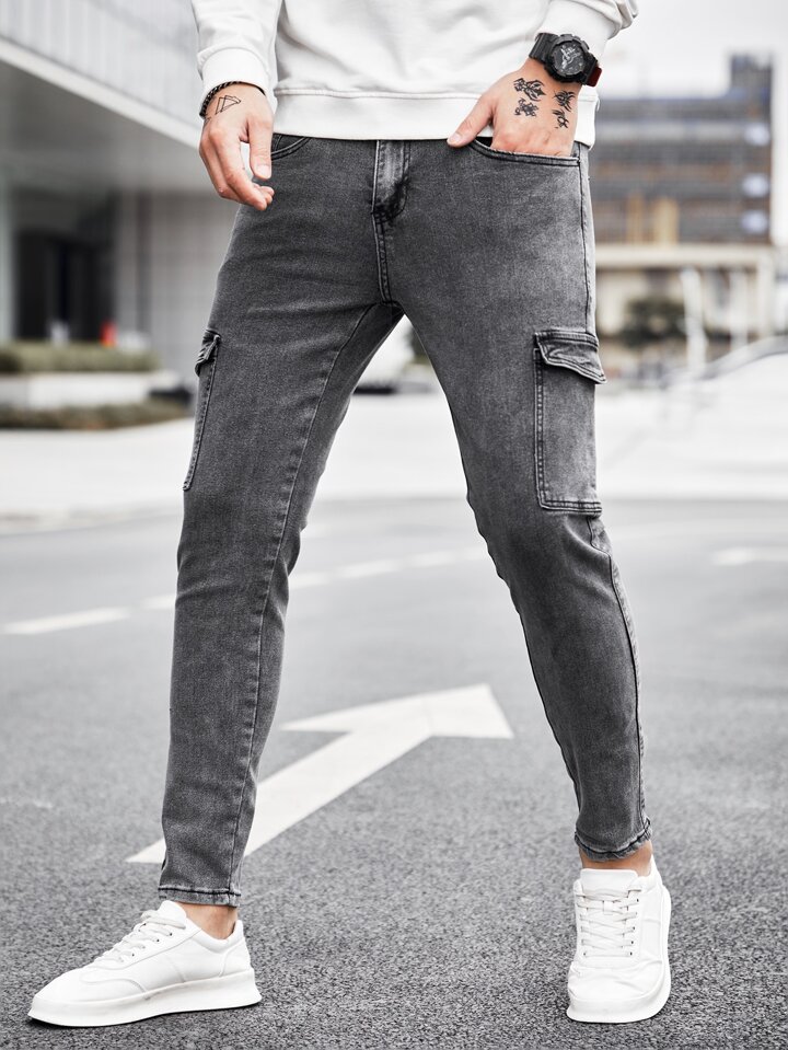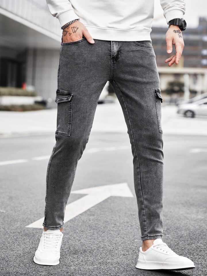 Guys Bleach Wash Flap Pocket Side Skinny Jeans