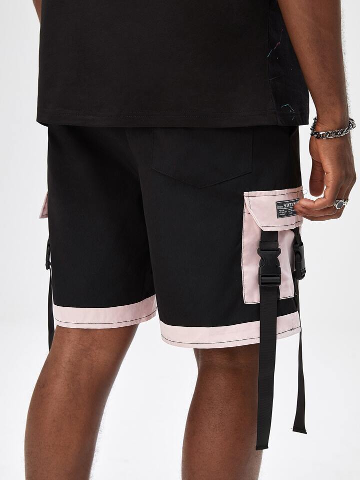 Guys Buckle Detail Flap Pocket Drawstring Waist Cargo Shorts