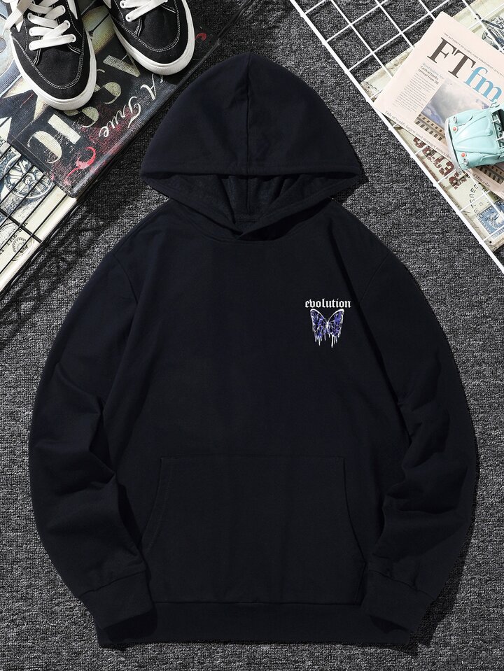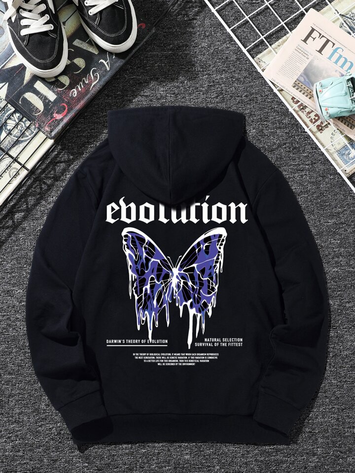 Guys Butterfly & Slogan Graphic Thermal Hoodie