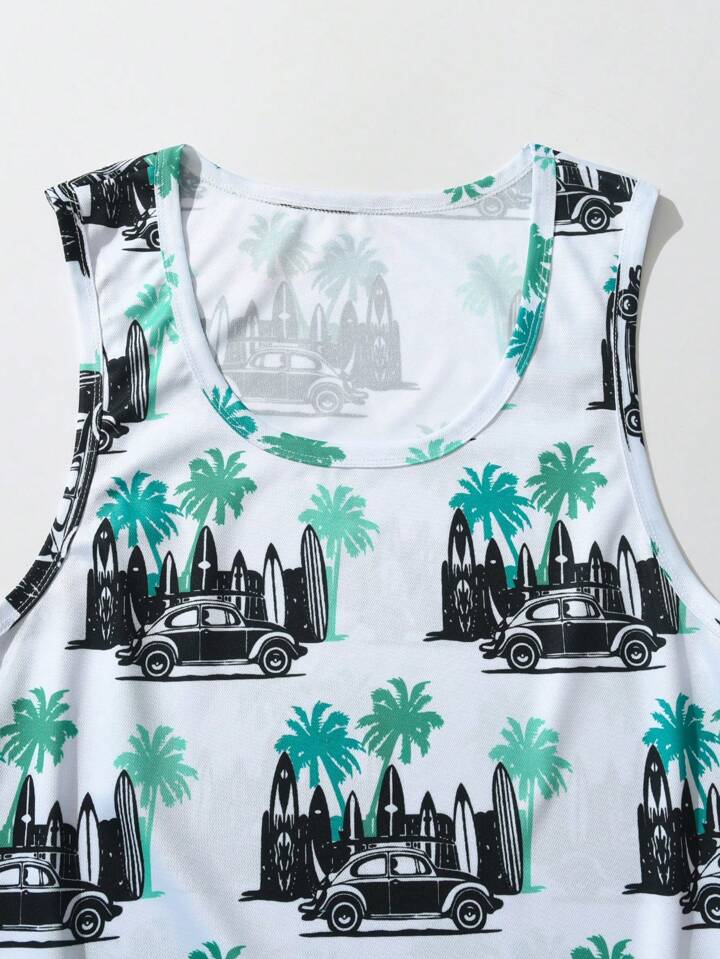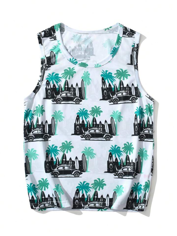 Guys Car Tropical Print Tank Top