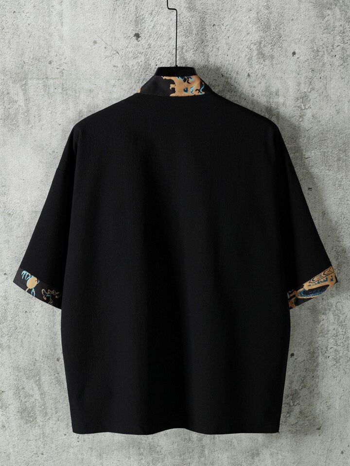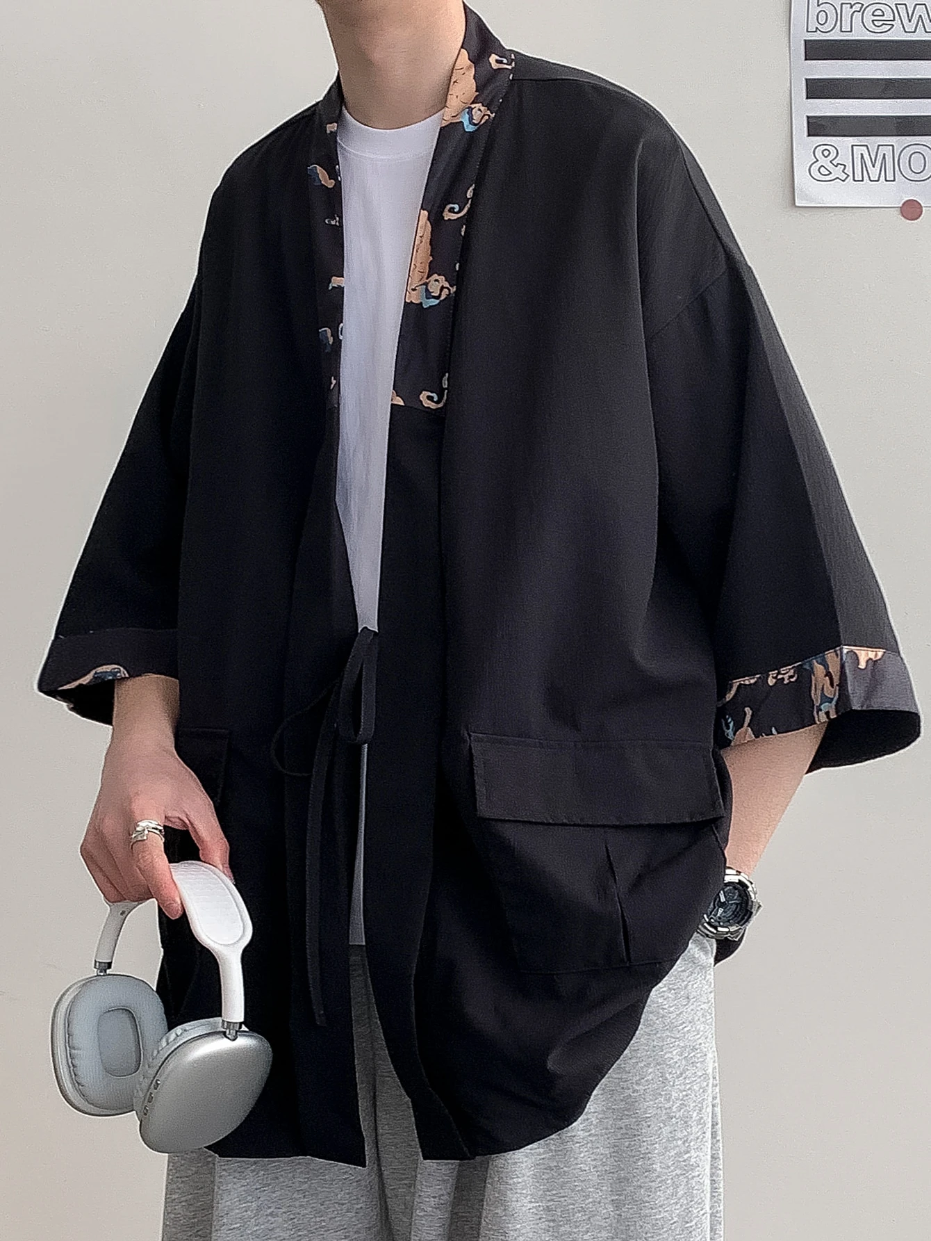 Guys Contrast Trim Tie Front Kimono Without Tee