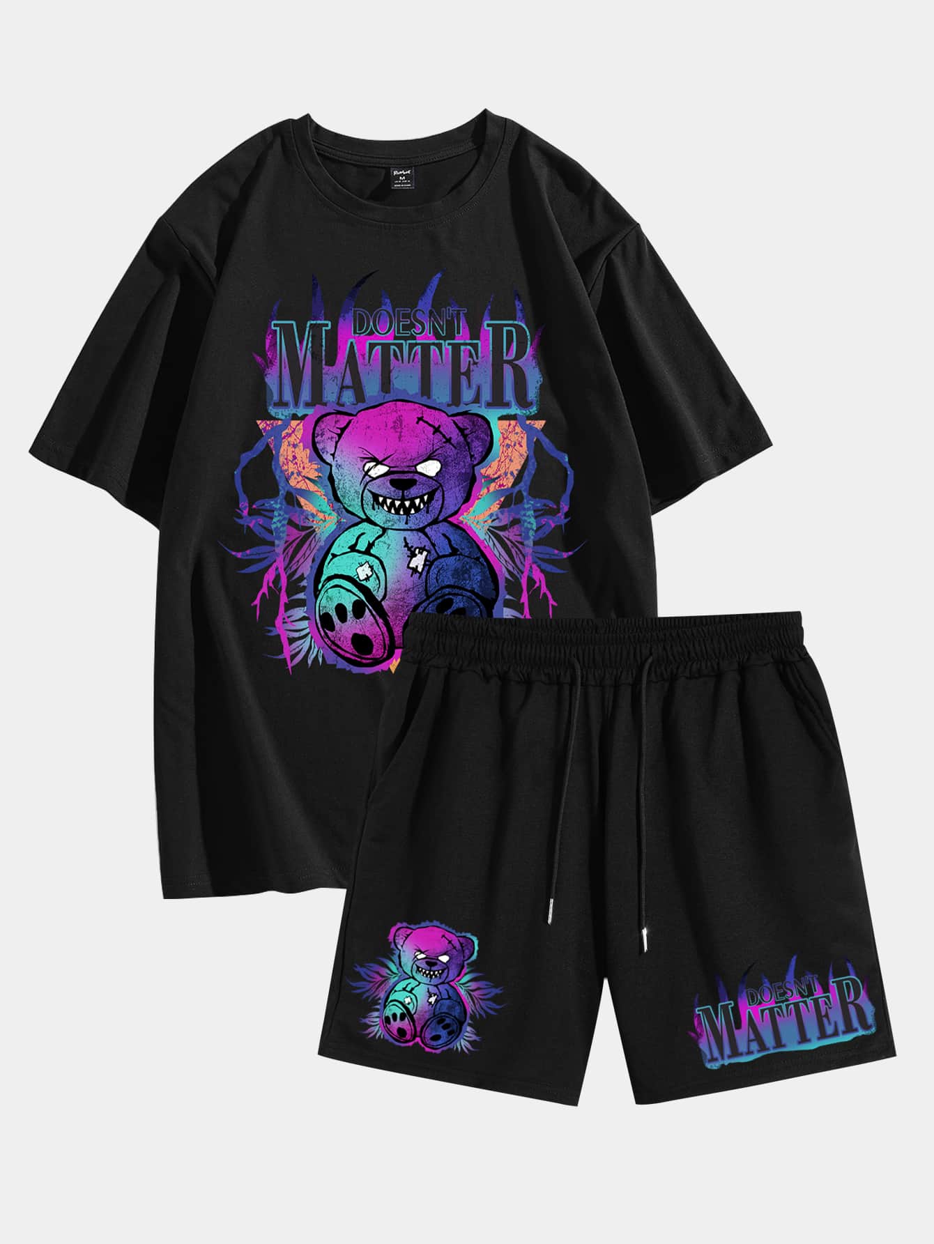 Guys Cotton Bear & Letter Graphic Tee & Drawstring Waist Shorts