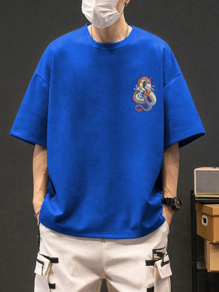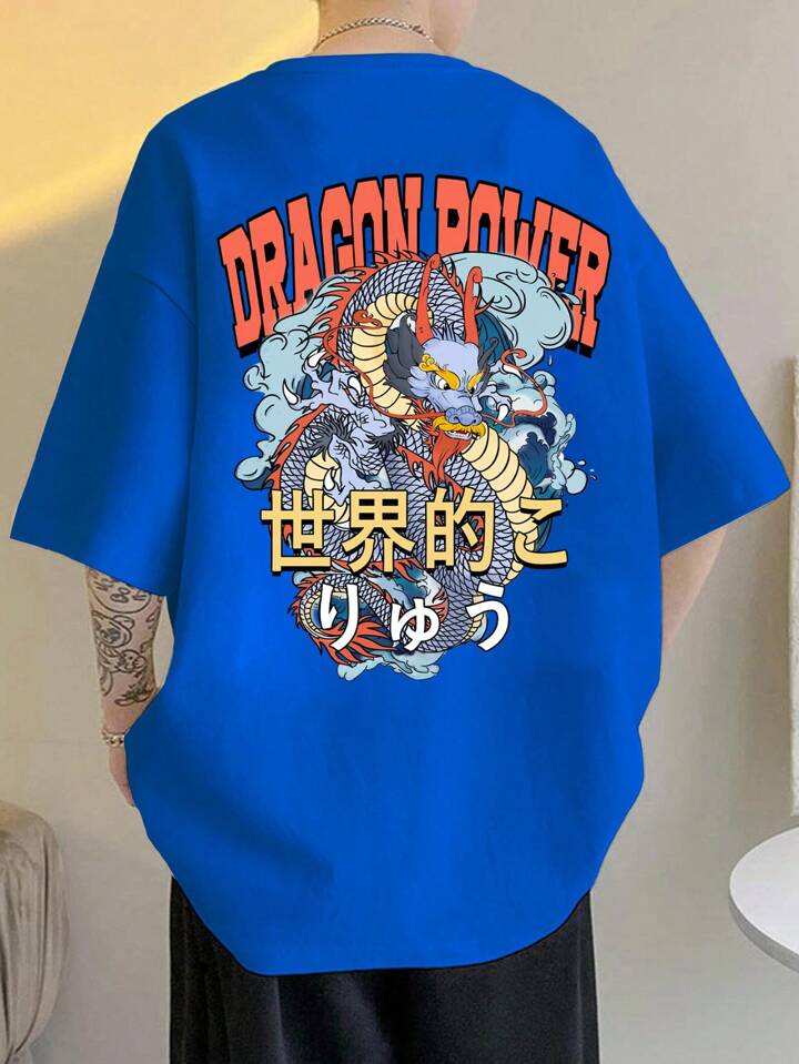 Guys Dragon & Letter Graphic Drop Shoulder Tee