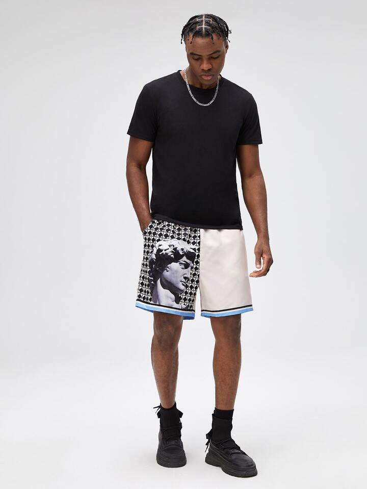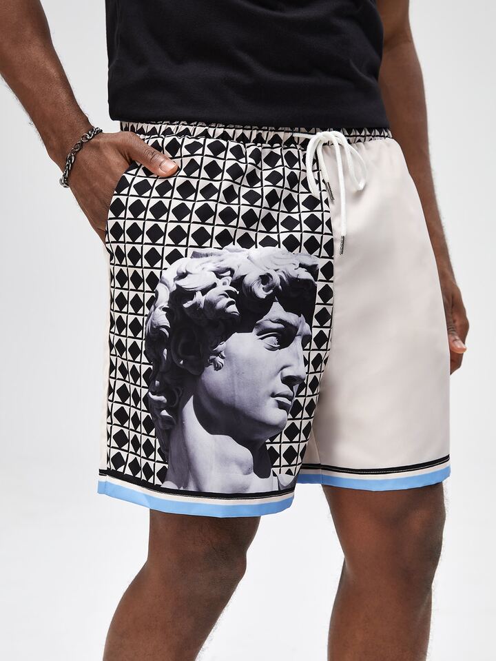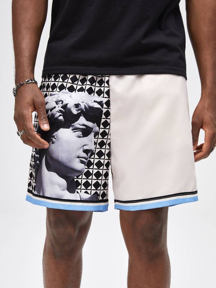 Guys Figure Graphic Striped Trim Shorts