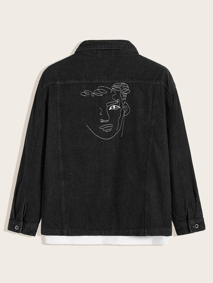 Guys Figure & Letter Graphic Denim Jacket