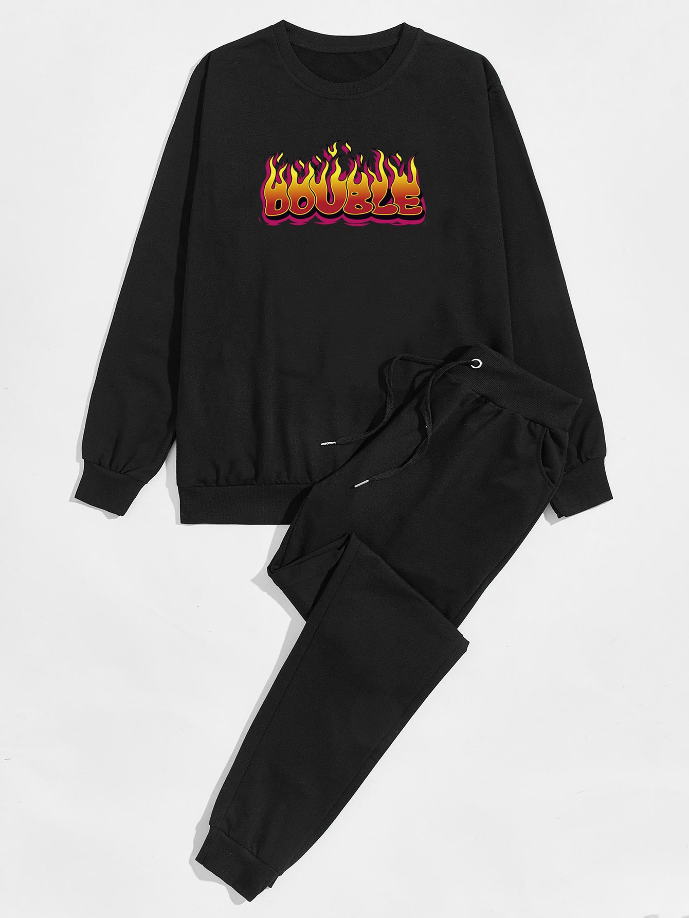 Guys Fire Print Sweatshirt & Drawstring Sweatpants