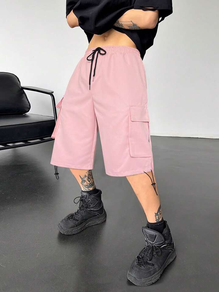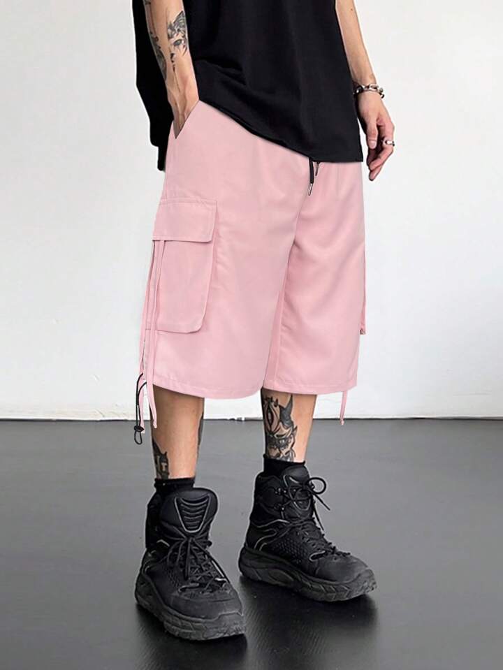 Guys Flap Pocket Drawstring Hem Cargo Shorts