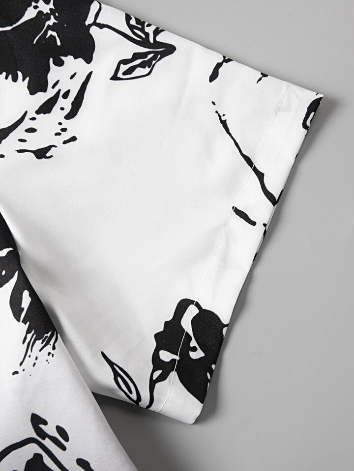 Guys Floral Print Shirt & Drawstring Waist Shorts Without Tee