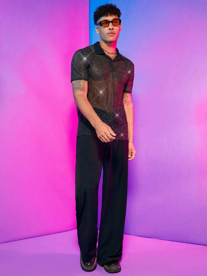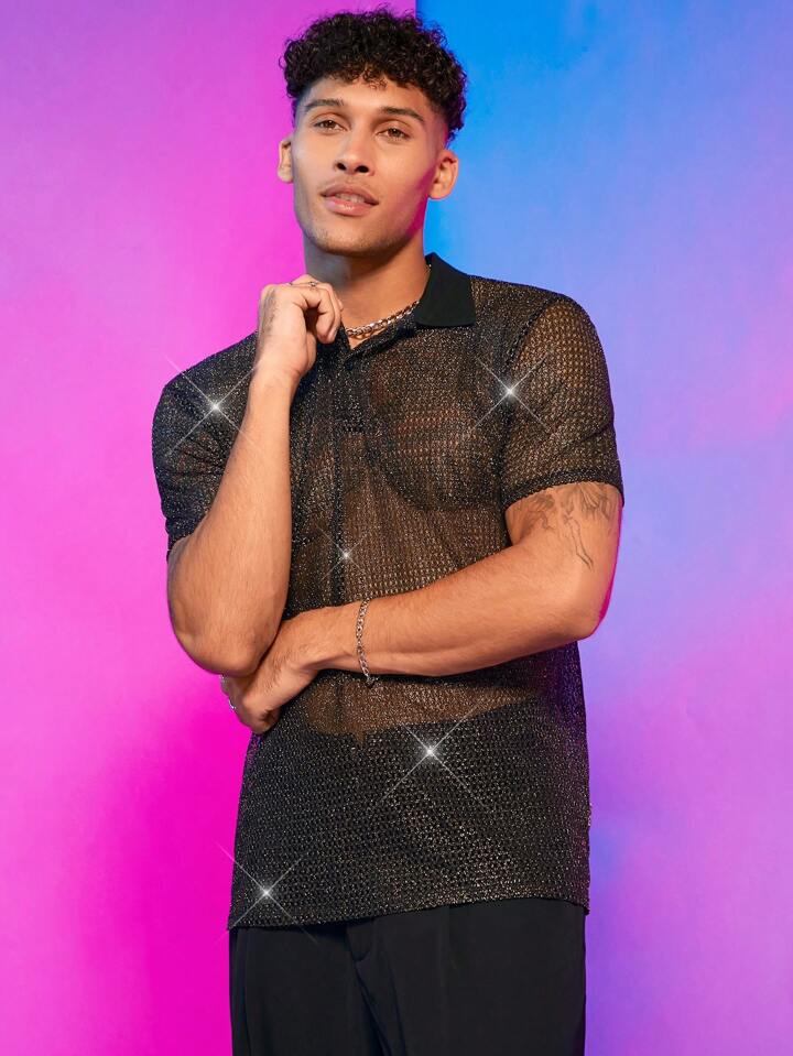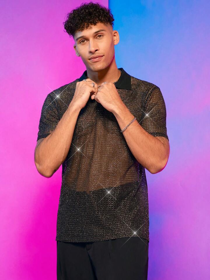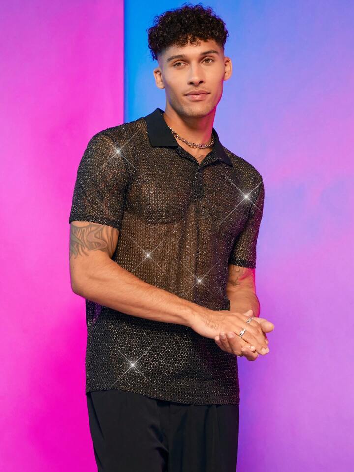 Guys Glitter Sheer Polo Shirt