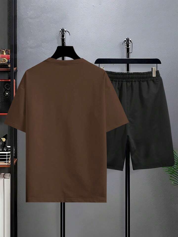 Guys Hand Print Drop Shoulder Tee & Letter Graphic Shorts