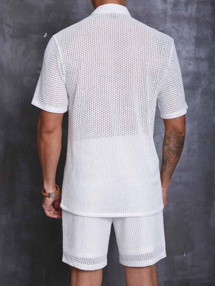 Guys Hollow Out Shirt & Drawstring Waist Shorts Set