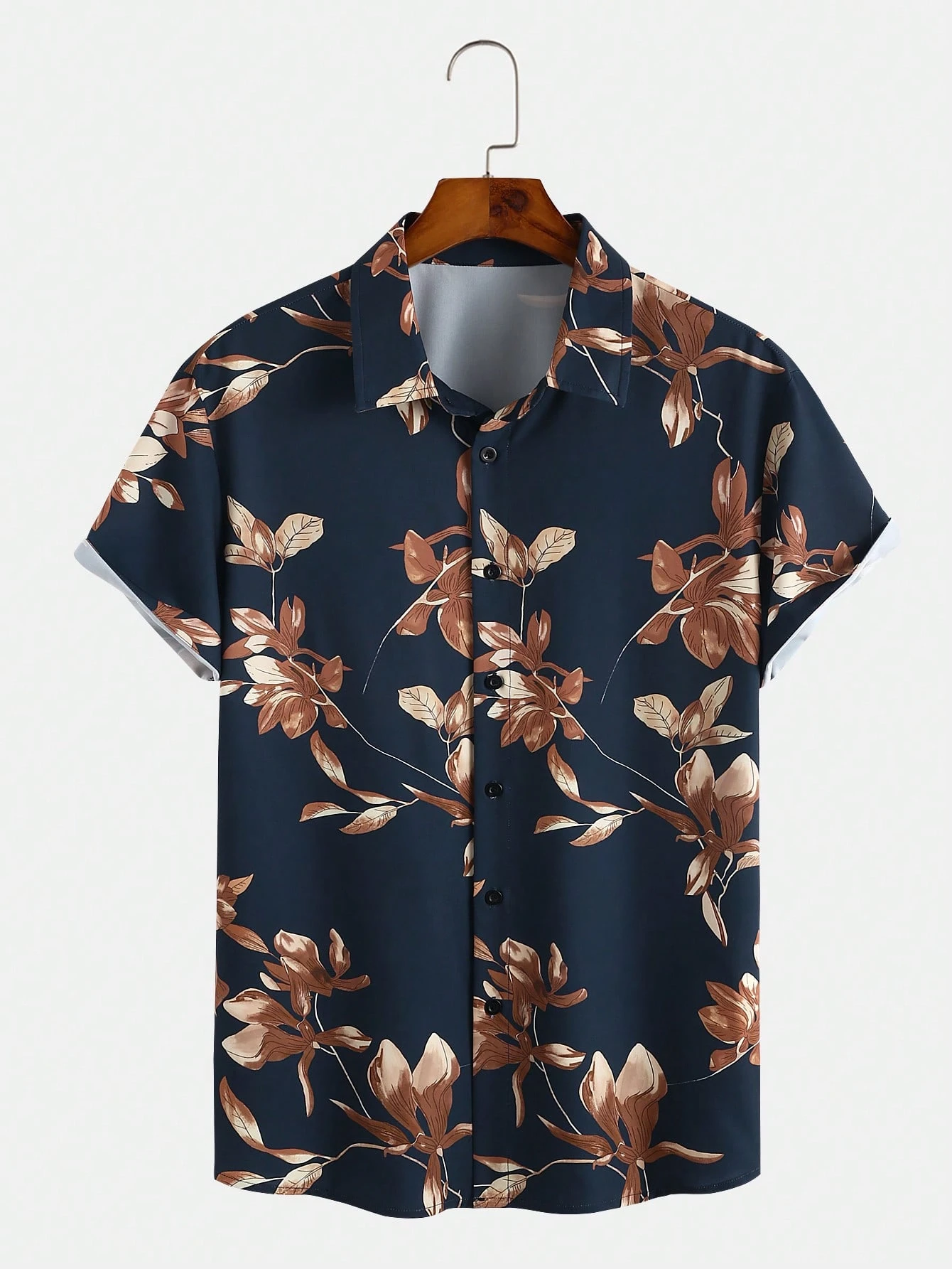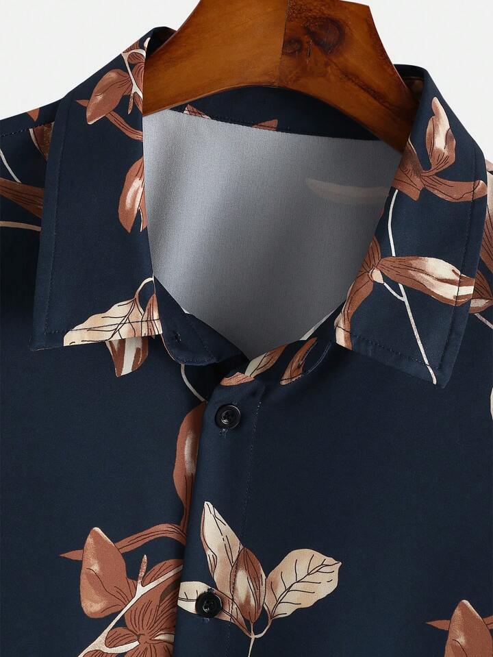 Guys Leaf Print Button Up Shirt