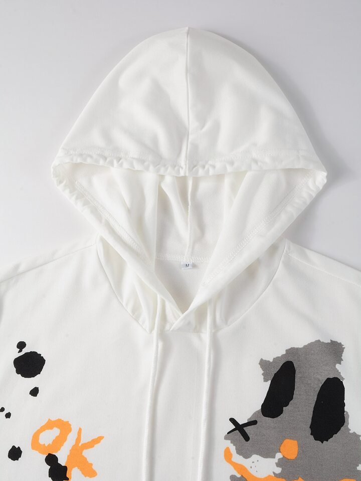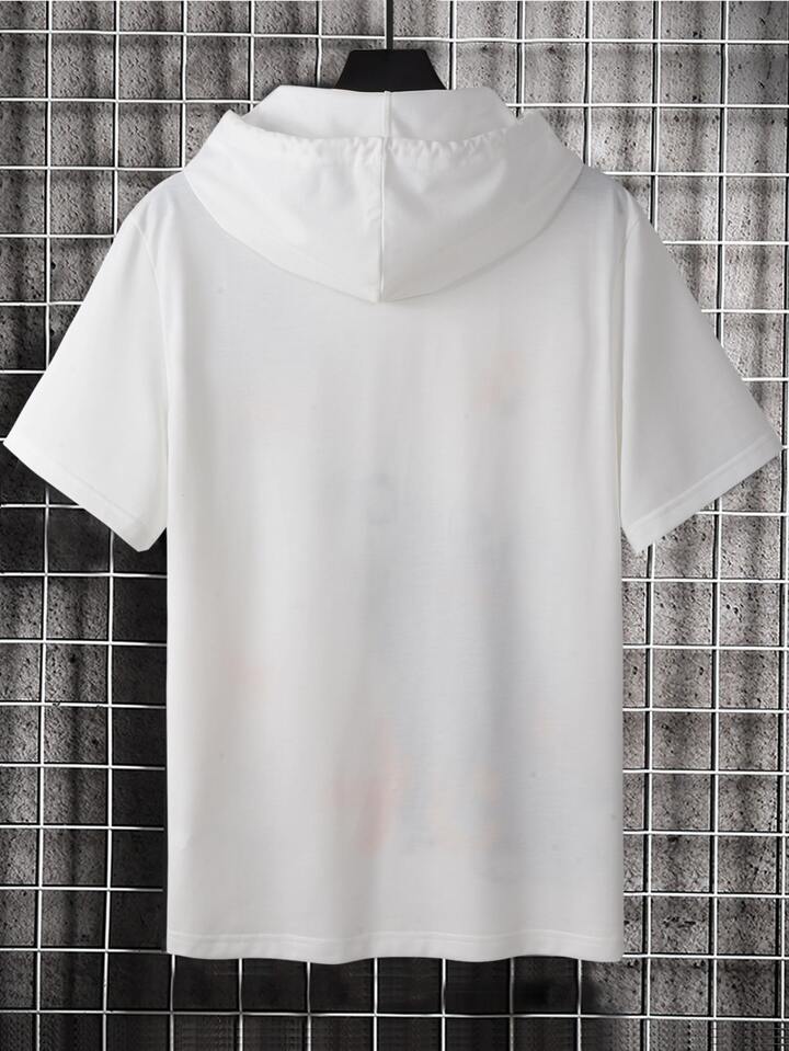Guys Letter & Cartoon Graphic Drawstring Hooded Tee