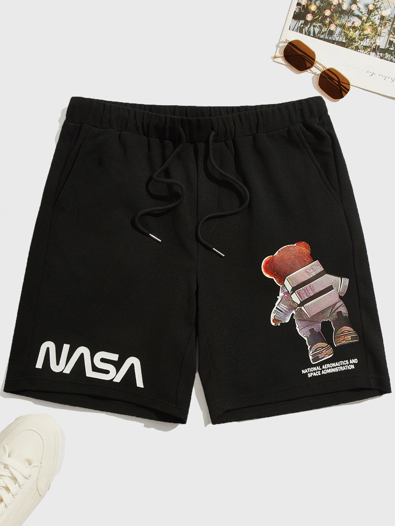 Guys Letter & Cartoon Graphic Drawstring Waist Shorts