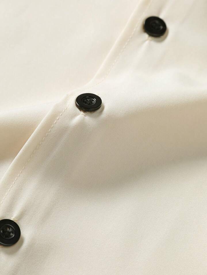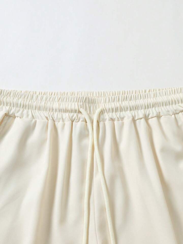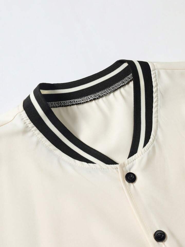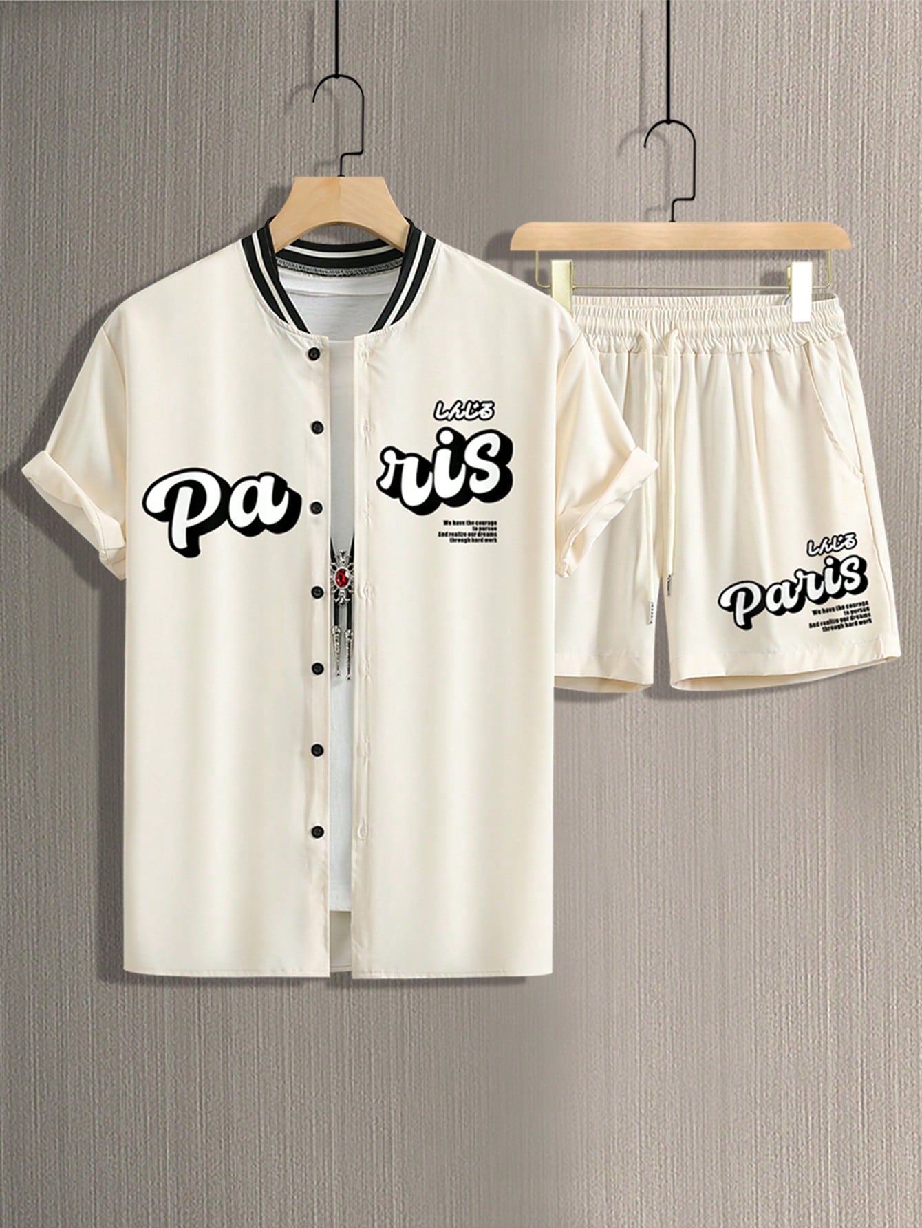 Guys Letter Graphic Baseball Collar Shirt & Drawstring Waist Shorts Without Tee