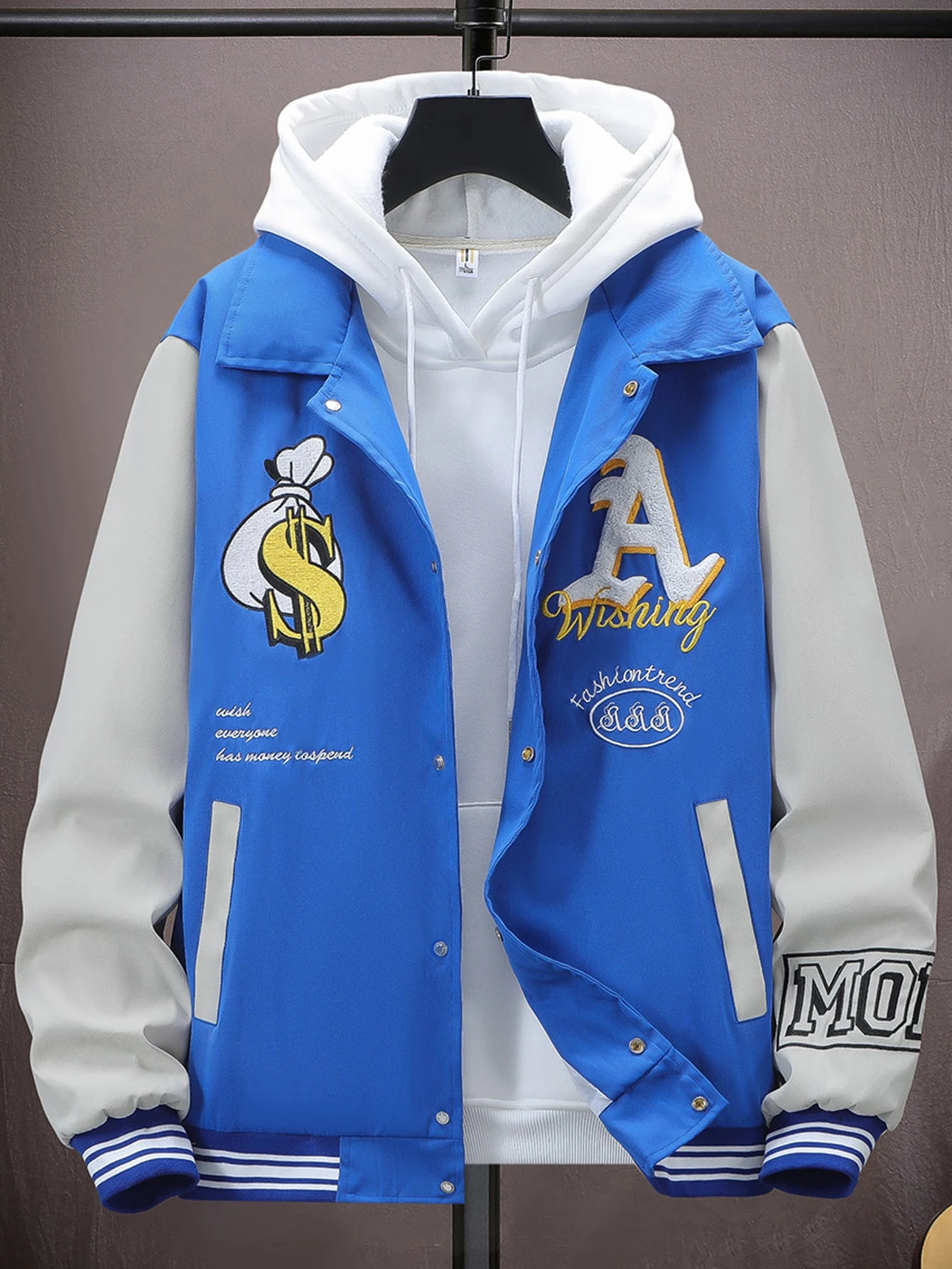 Guys Letter Graphic Colorblock Striped Trim Varsity Jacket Without Hoodie