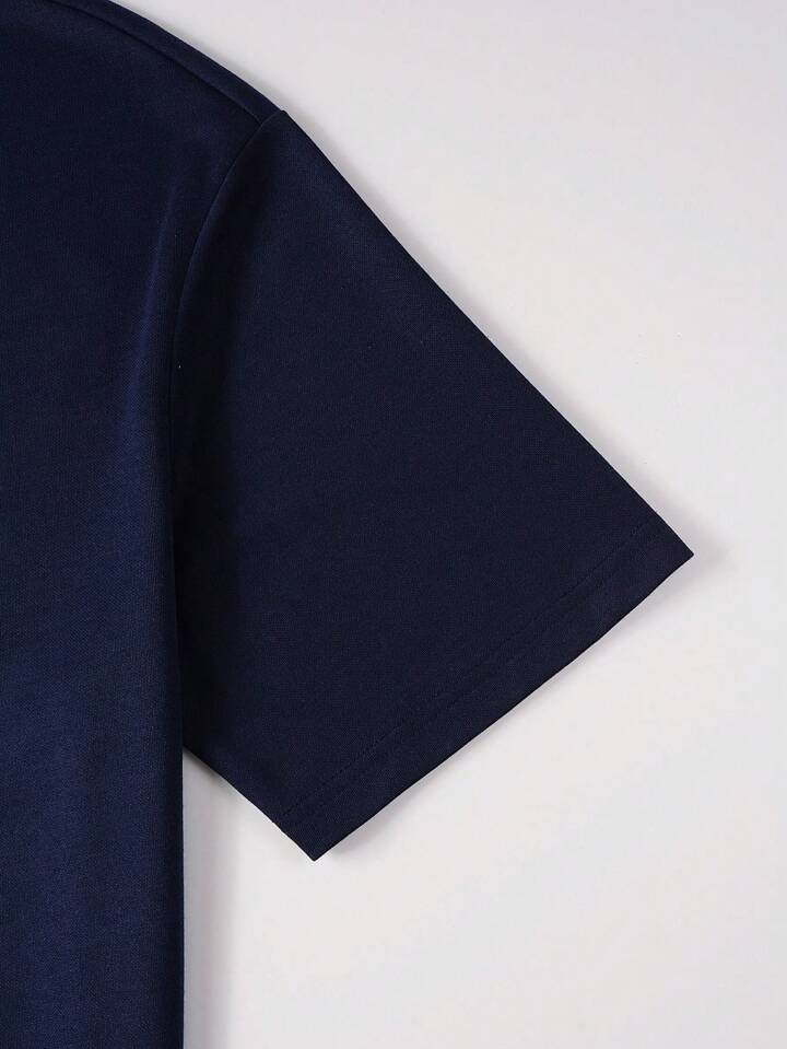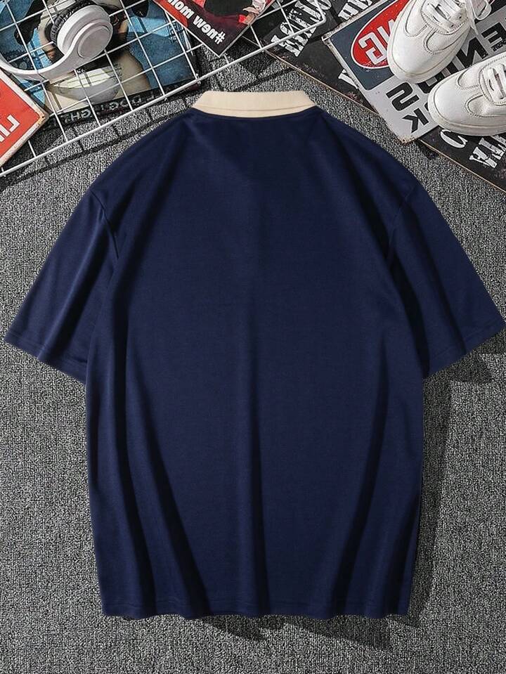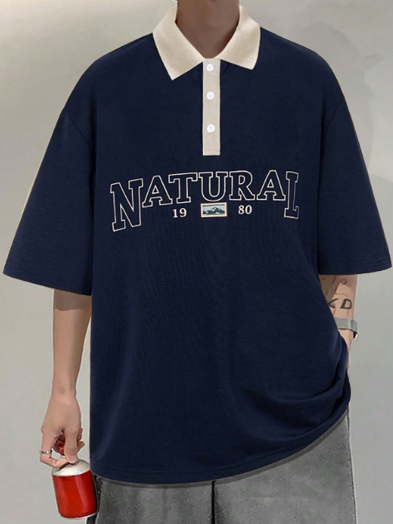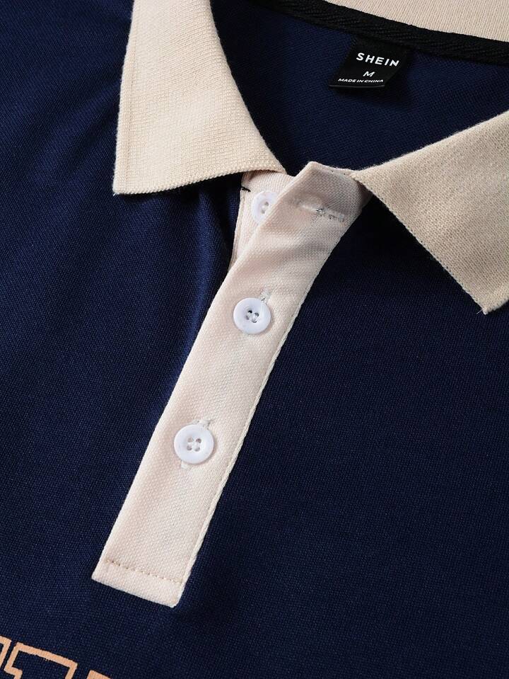 Guys Letter Graphic Contrast Collar Drop Shoulder Polo Shirt