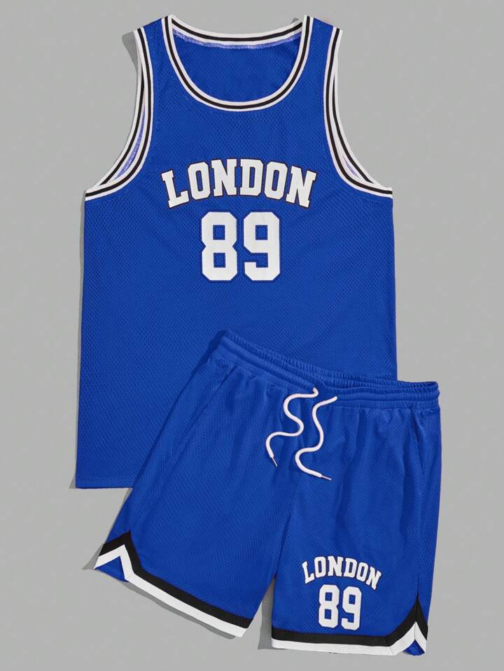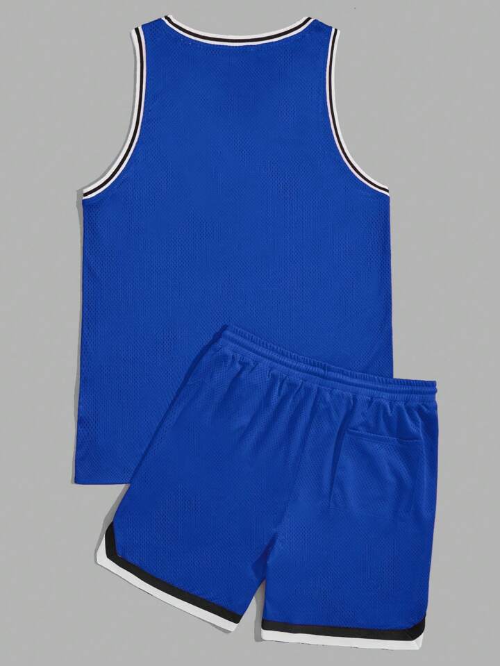 Guys Letter Graphic Contrast Trim Basketball Jersey Set