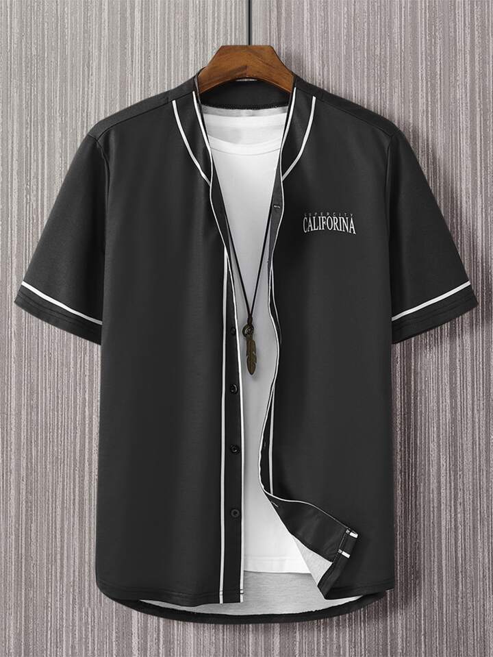Guys Letter Graphic Contrast Trim Shirt Without Tee