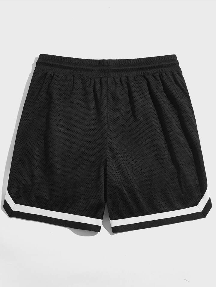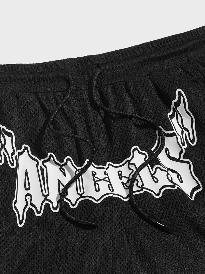 Guys Letter Graphic Drawstring Waist Mesh Shorts