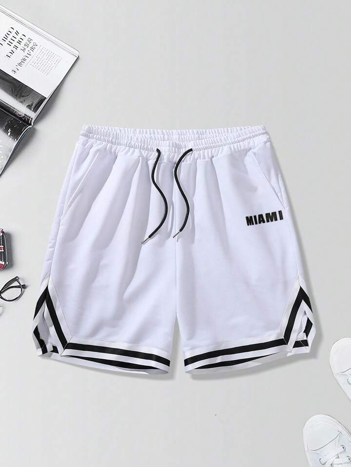 Guys Letter Graphic Drawstring Waist Shorts