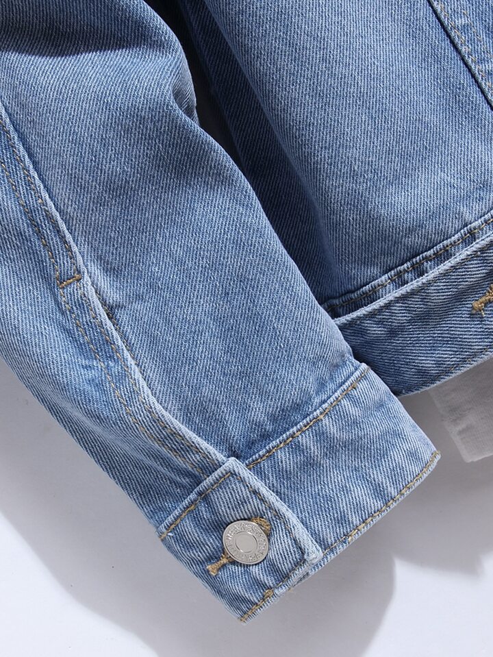 Guys Letter Graphic Patched Detail Denim Jacket Without Tee